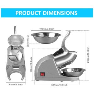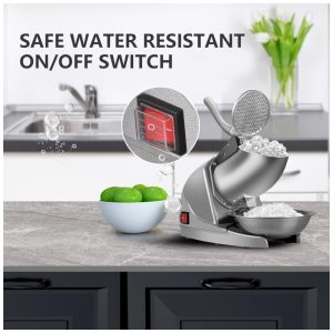 GELO RAPIDO DE 286 LBS , HR O triturador de gelo elétrico usa um motor de cobre de alta potência de 380 W com grande potência e velocidade de até 1500 RPM. Ele pode produzir 286 libras de gelo raspado por hora.