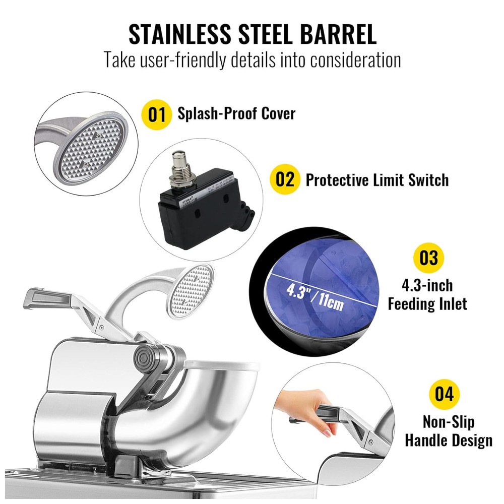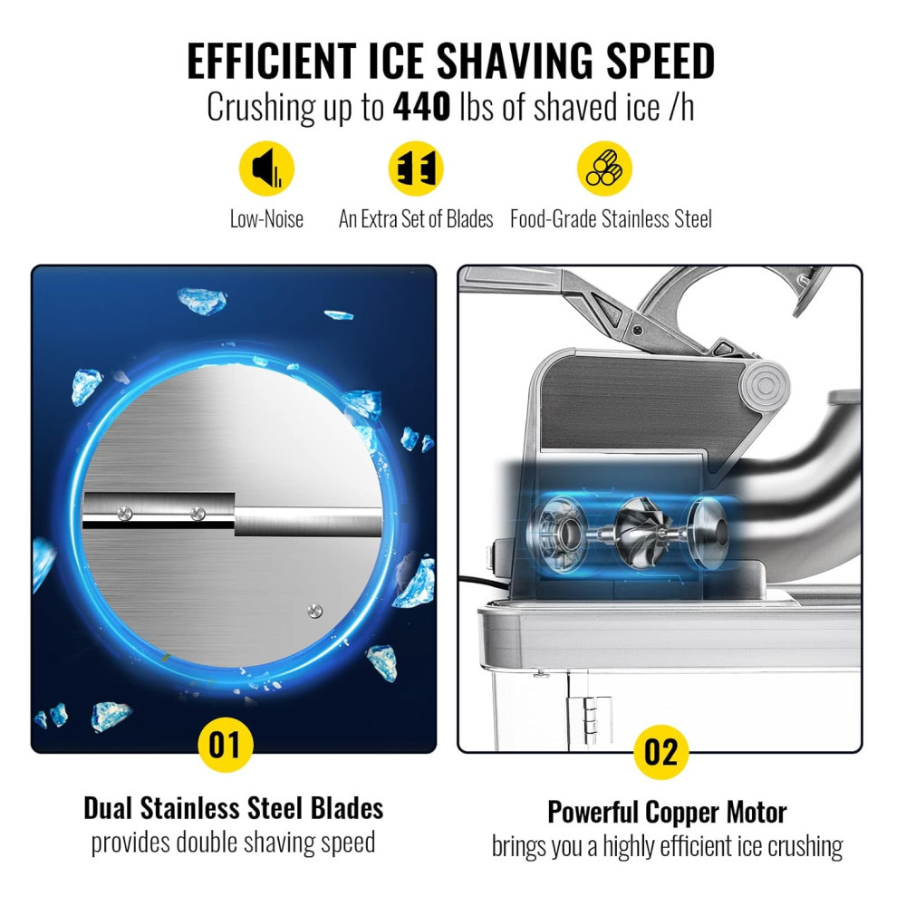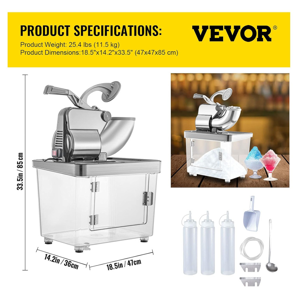 Máquina de Raspadinha Profissional Produz 199 kg H 300W 110v VEVOR 110V Electric Ice Shaver Cinza