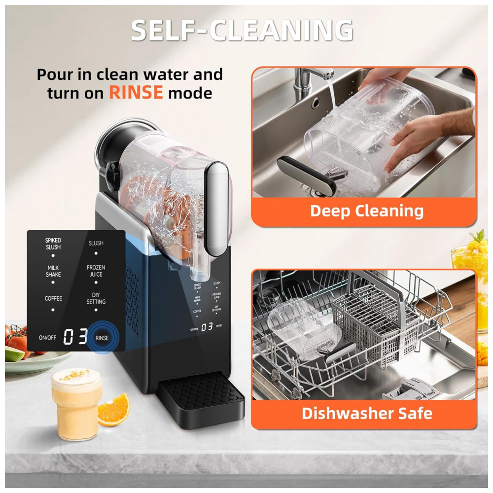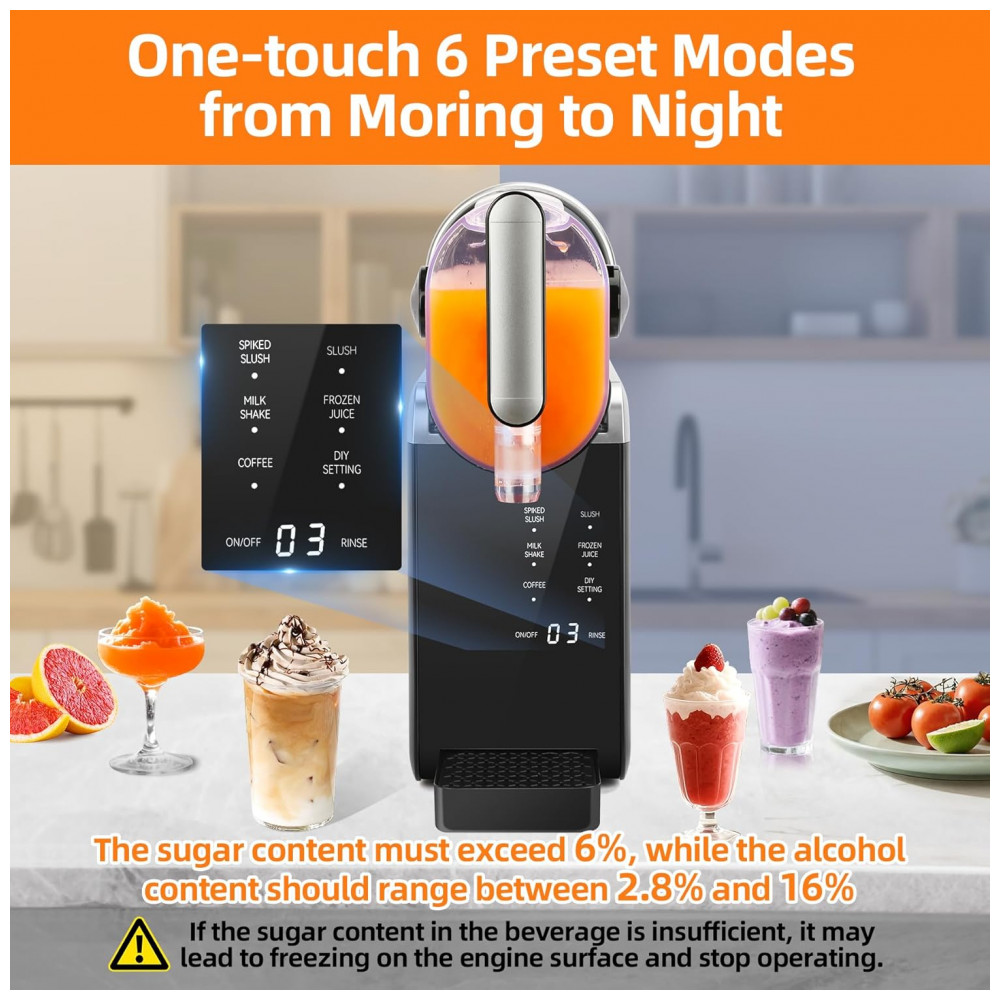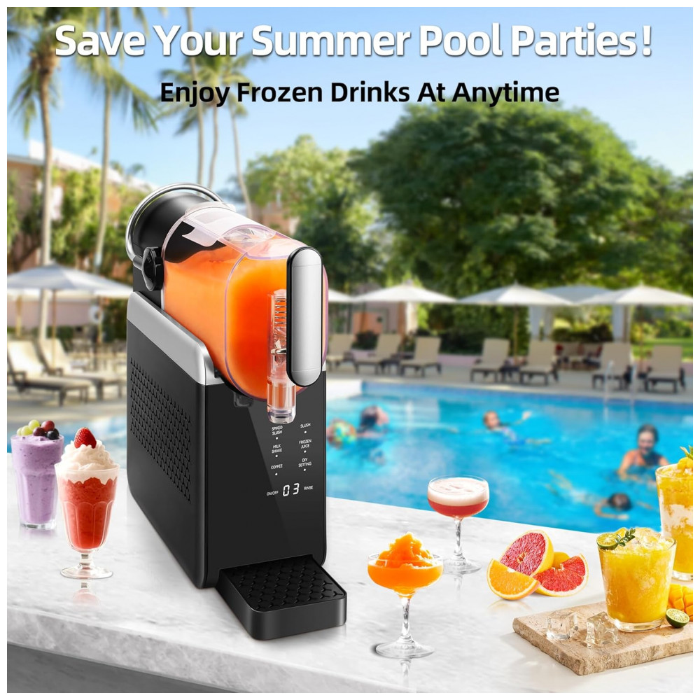 Transforme suas bebidas com a inovadora máquina de frozen da CalmBloom! Sem a necessidade de gelo, basta despejar suas bebidas com açúcar ou álcool no barril e selecionar um programa pré-definido. As lâminas de 360 graus criam frozen suaves e perfeitos, sem a bagunça dos cubos de gelo. Com capacidade de 2,6L, 6 programas diferentes e tecnologia de congelamento rápido, esta máquina é perfeita para festas e encontros. Aproveite sobremesas geladas e drinks incríveis com facilidade e rapidez!