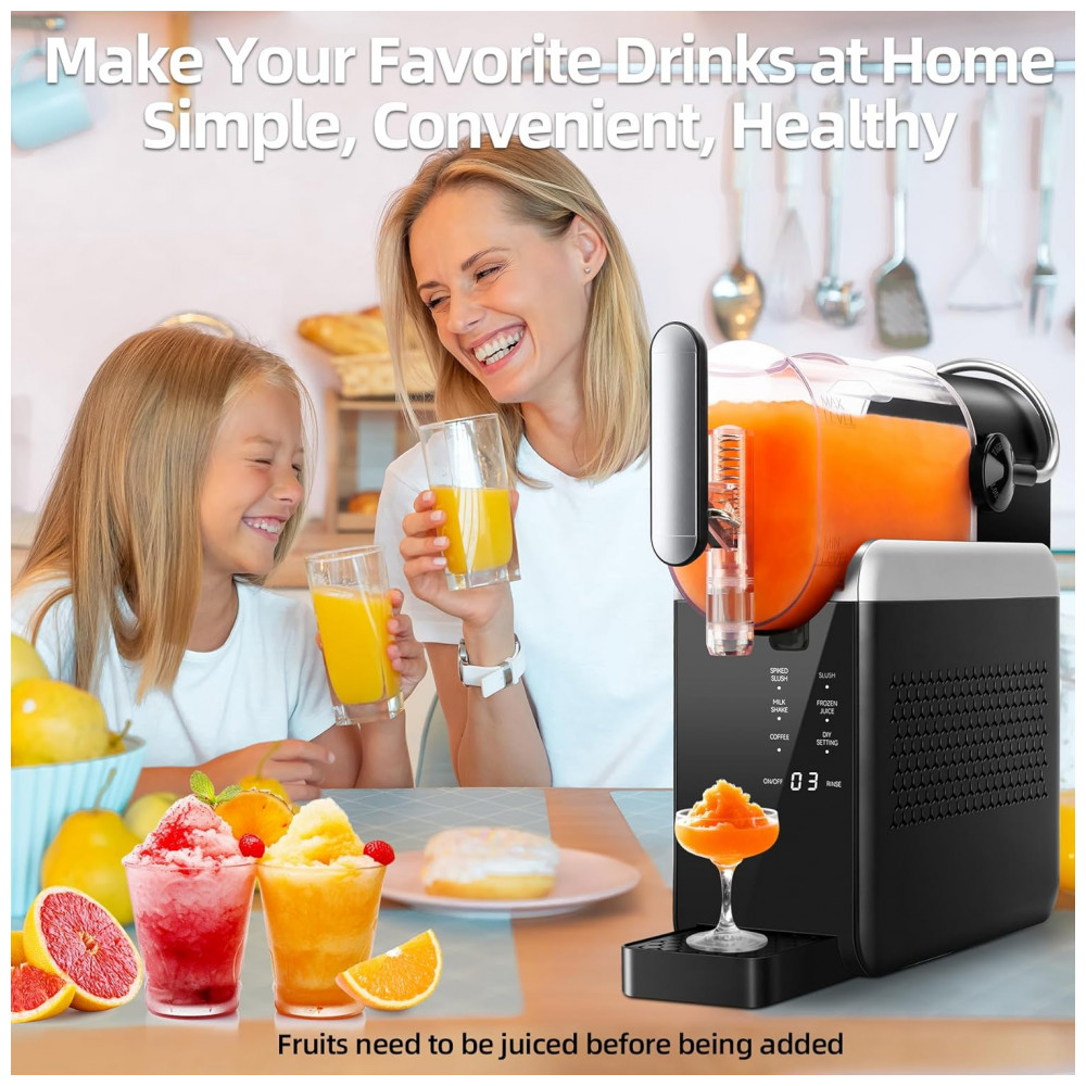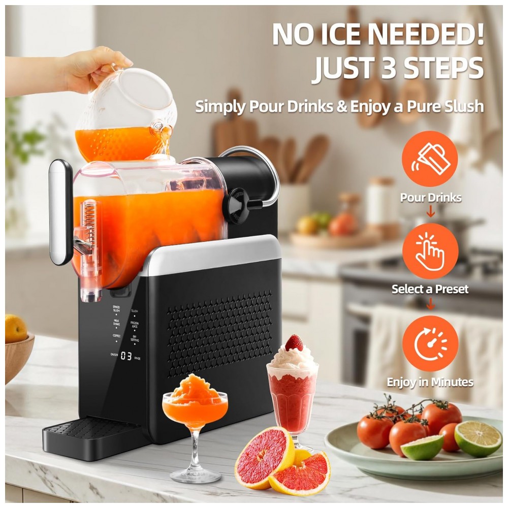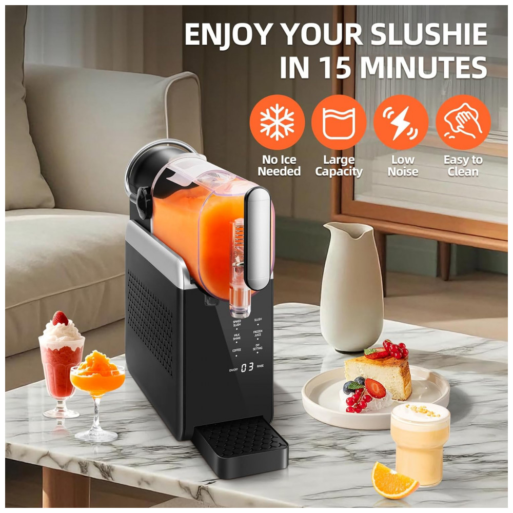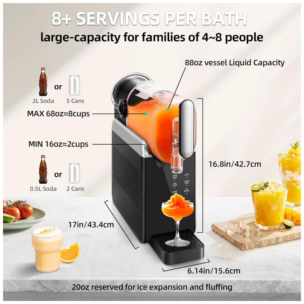 Transforme suas bebidas com a inovadora máquina de frozen da CalmBloom! Sem a necessidade de gelo, basta despejar suas bebidas com açúcar ou álcool no barril e selecionar um programa pré-definido. As lâminas de 360 graus criam frozen suaves e perfeitos, sem a bagunça dos cubos de gelo. Com capacidade de 2,6L, 6 programas diferentes e tecnologia de congelamento rápido, esta máquina é perfeita para festas e encontros. Aproveite sobremesas geladas e drinks incríveis com facilidade e rapidez!
