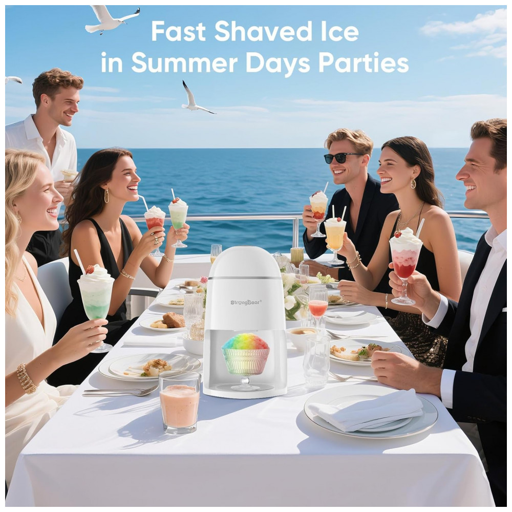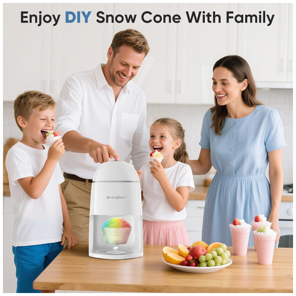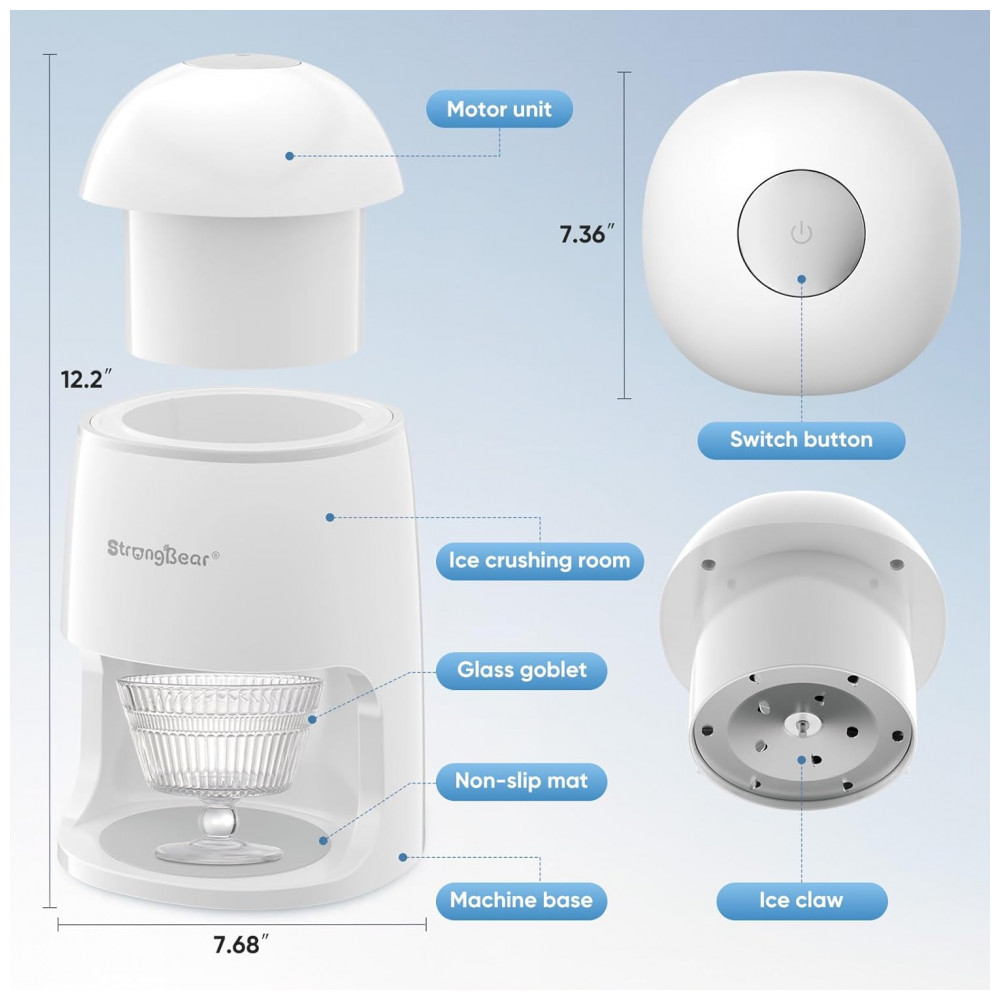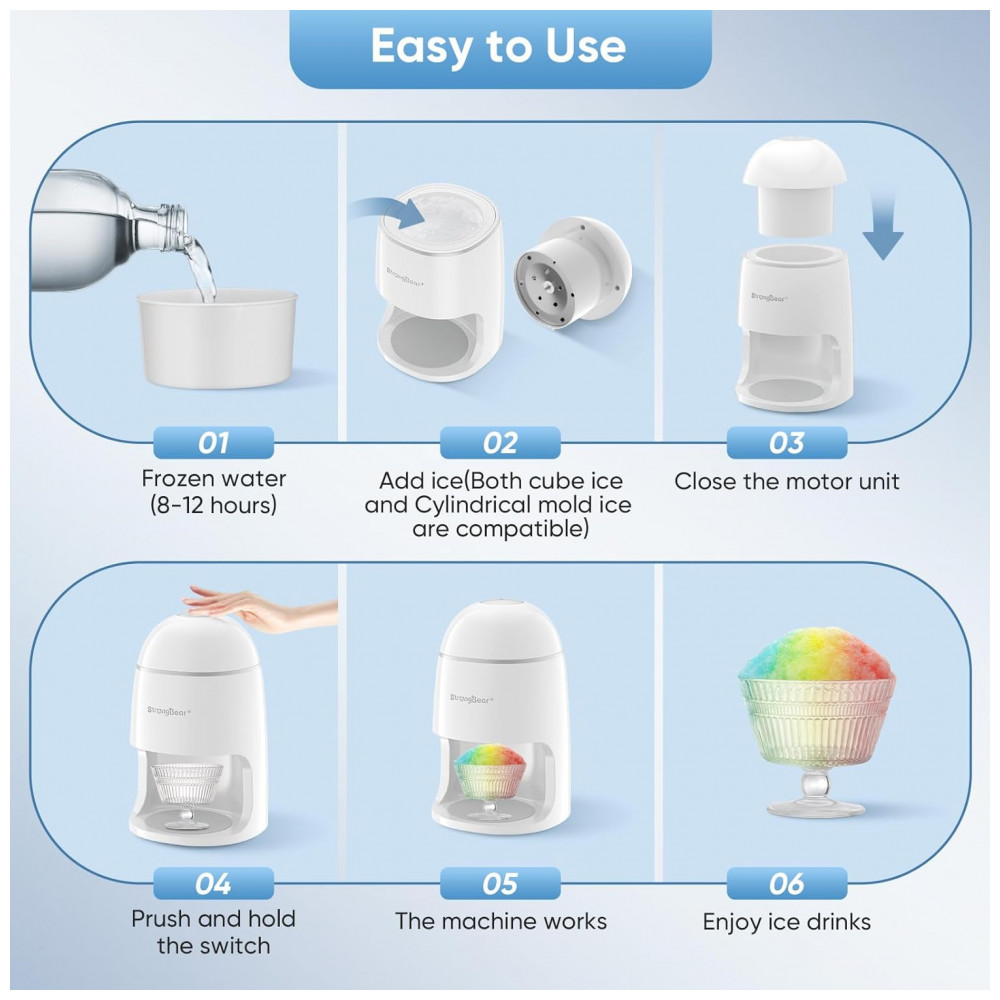 Desfrute de gelo raspado rapidamente com a Máquina de Raspadinha StrongBear, equipada com um motor aprimorado e lâminas afiadas que permitem raspar um bloco de gelo inteiro em menos de 1 minuto. Produza flocos de neve finos e fofos facilmente, sem preocupações com o tipo de gelo. Acompanha 2 copos moldes de gelo reutilizáveis, 1 taça de vidro e 1 tapete antiderrapante. Fácil de usar, basta acionar um interruptor para começar a raspar gelo e criar a textura perfeita para uma deliciosa raspadinha. Além disso, é fácil de limpar, compacta, durável e resistente, ideal para festas de verão, celebrações infantis e diversas ocasiões. Prepare raspadinhas, slushies e coquetéis de forma prática e rápida. A Máquina de Raspadinha StrongBear é a companhia perfeita para refrescar os dias quentes.