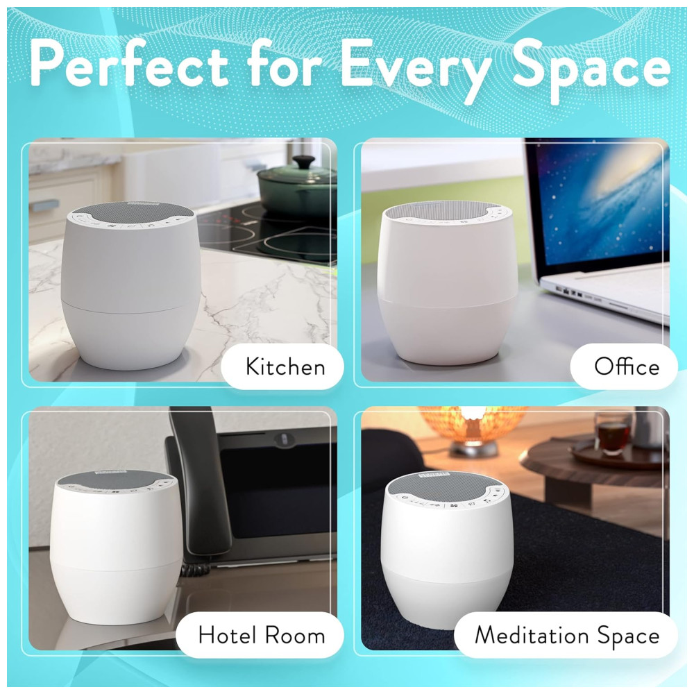 PERFEITO PARA SLEEPERS LEVE E PRIVACIDADE DE ESCRITÓRIO Máscara ruídos de fundo, como cães latindo e roncos, para melhorar o sono. Os sons mascaram as conversas privadas, tornando o perfeito para a privacidade do escritório.