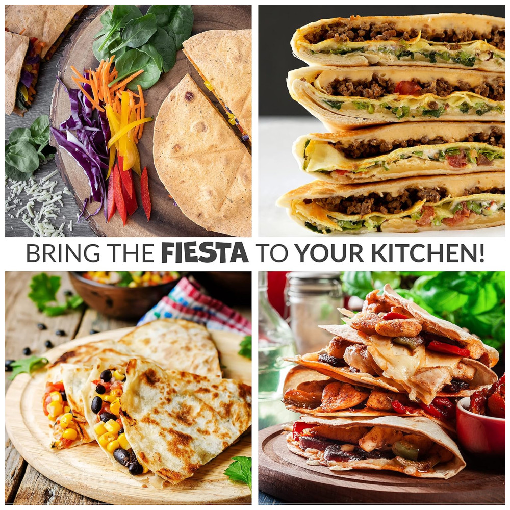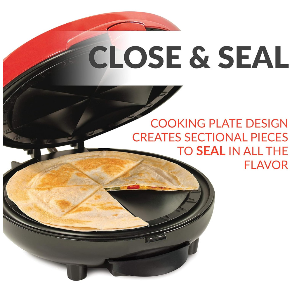 PLACA DE COZEDURA ÚNICA Quando a tampa fecha, o design da placa de cozimento cria 6 peças seccionais para selar perfeitamente os ingredientes saborosos tornando a quesadilla perfeita