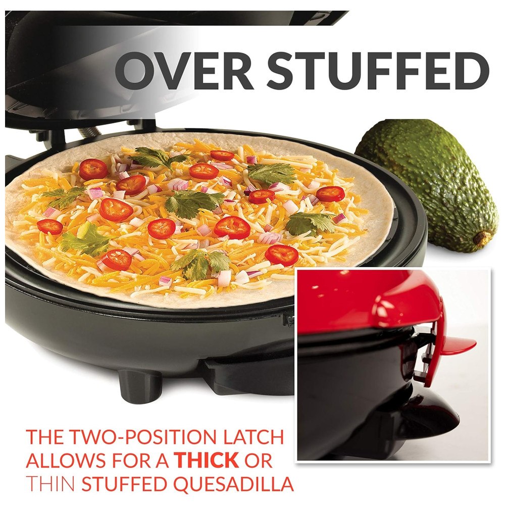 TRAVA DE RECUPERAÇÃO EXTRA Uma trava de duas posições na tampa se ajusta para permitir quesadillas recheadas finas ou grossas