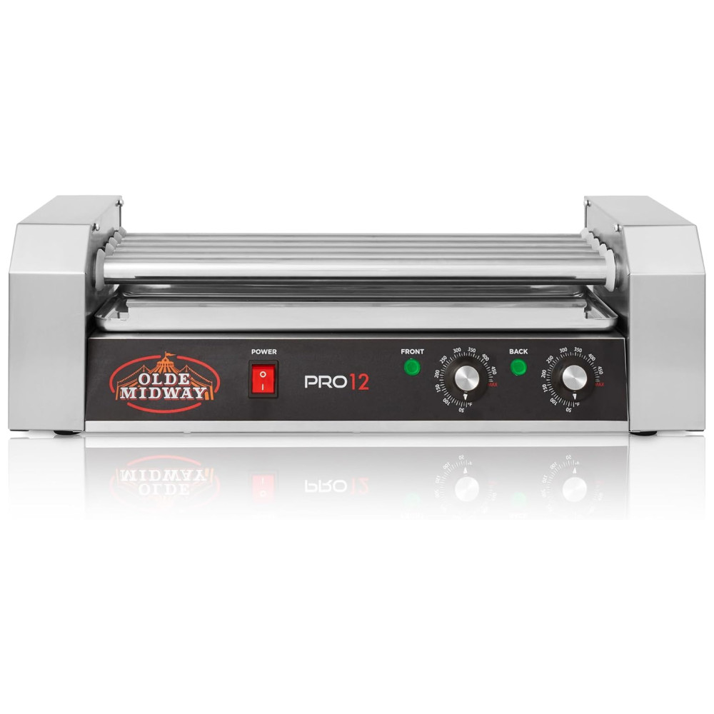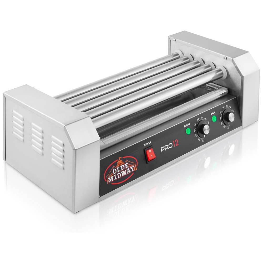 A máquina elétrica de cachorro quente da Olde Midway é perfeita para preparar deliciosos cachorros quentes estilo rotisserie. Com capacidade para cozinhar até 12 cachorros quentes de uma vez em seus 5 rolos de aço inoxidável, este fogão de nível comercial é fácil de transportar e ideal para uso em empresas, lojas de conveniência, cinemas, mercados de produtores, barracas de concessão em eventos escolares, churrascos no quintal, festas de aniversário, eventos esportivos e muito mais.