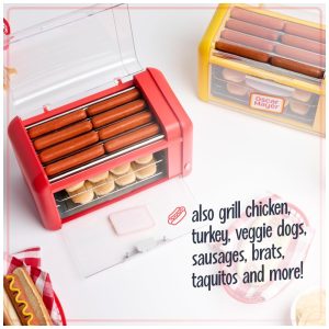 Máquina de Salsicha Hot Dog Nostalgia Oscar Mayer para 8 Hot Dogs rolos de aço inox racks aquecedores antiaderentes timer ajustável