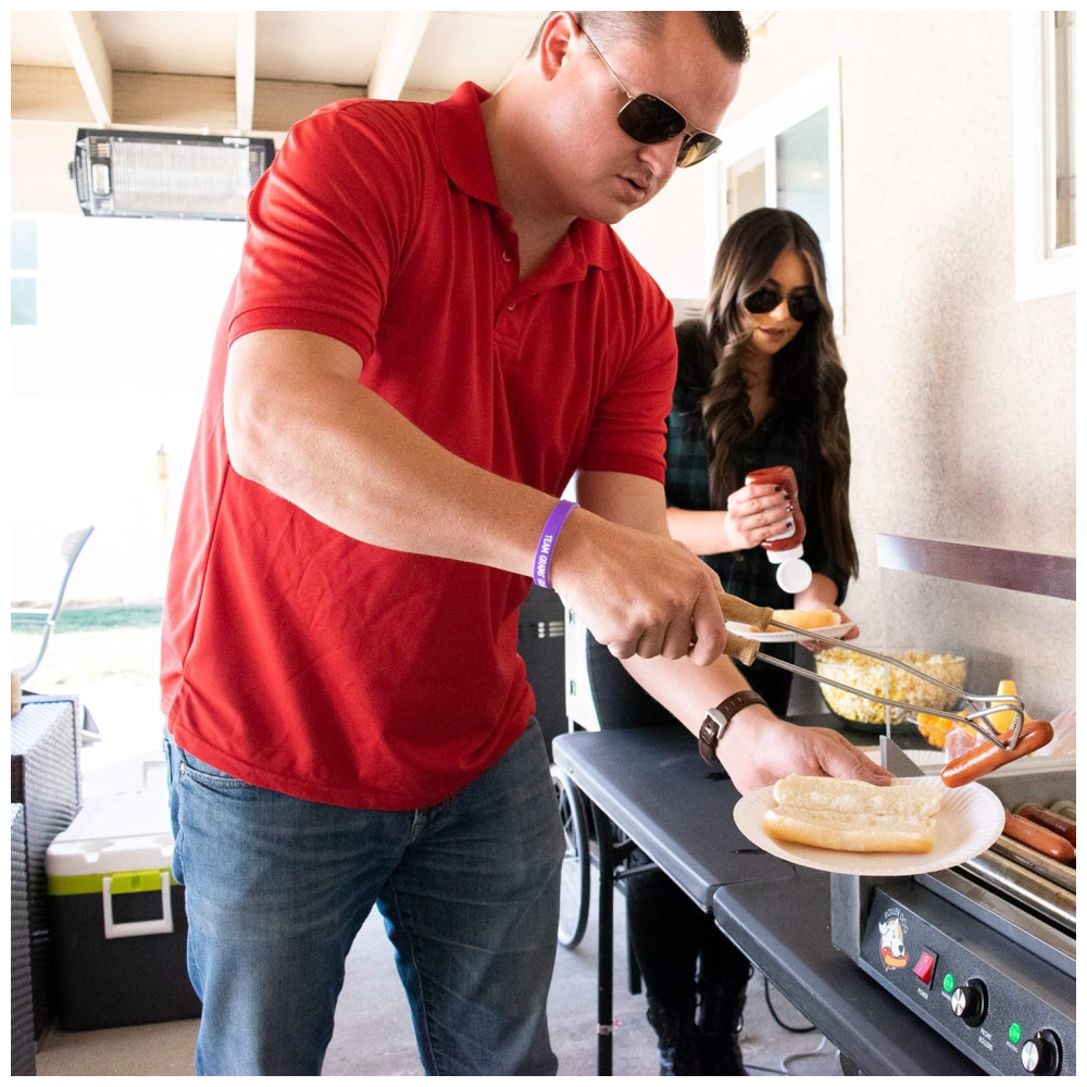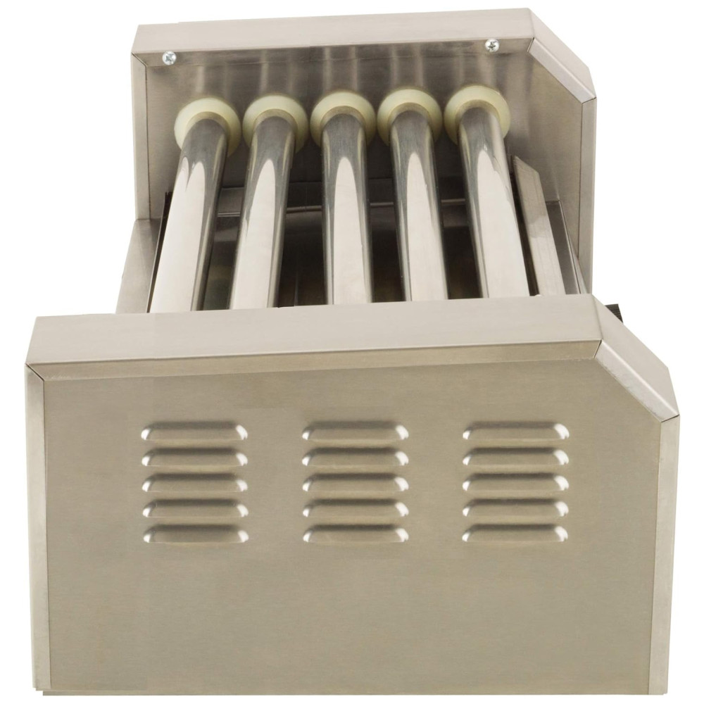 Grelhe cachorros quentes e salsichas no estilo estádio com o Roller Dog, um rolo de cachorro quente de qualidade comercial. Cozinhe cachorros quentes suculentos e carnudos facilmente e sem bagunça em sua casa ou empresa. Os rolos antiaderentes de aço inoxidável giram 360 graus, garantindo que todos os cachorros quentes sejam cozidos uniformemente e com perfeição. O design do rolo extralento mantém os cachorros quentes frescos e suculentos até serem servidos. Os controles de aquecimento dianteiros e traseiros permitem que você aqueça cachorros quentes em alguns rolos e os mantenha aquecidos em outros. A bandeja coletora removível ajuda a coletar gordura para fácil limpeza. Perfeito para grandes churrascos de férias e festas de aniversário, o Roller Dog permite que você relaxe e socialize com seus convidados ou assista ao jogo em vez de ter que ficar virando cachorro quente na churrasqueira constantemente. Também é ideal para usos comerciais, como barracas de concessão, postos de gasolina, minimercados e vendedores ambulantes.