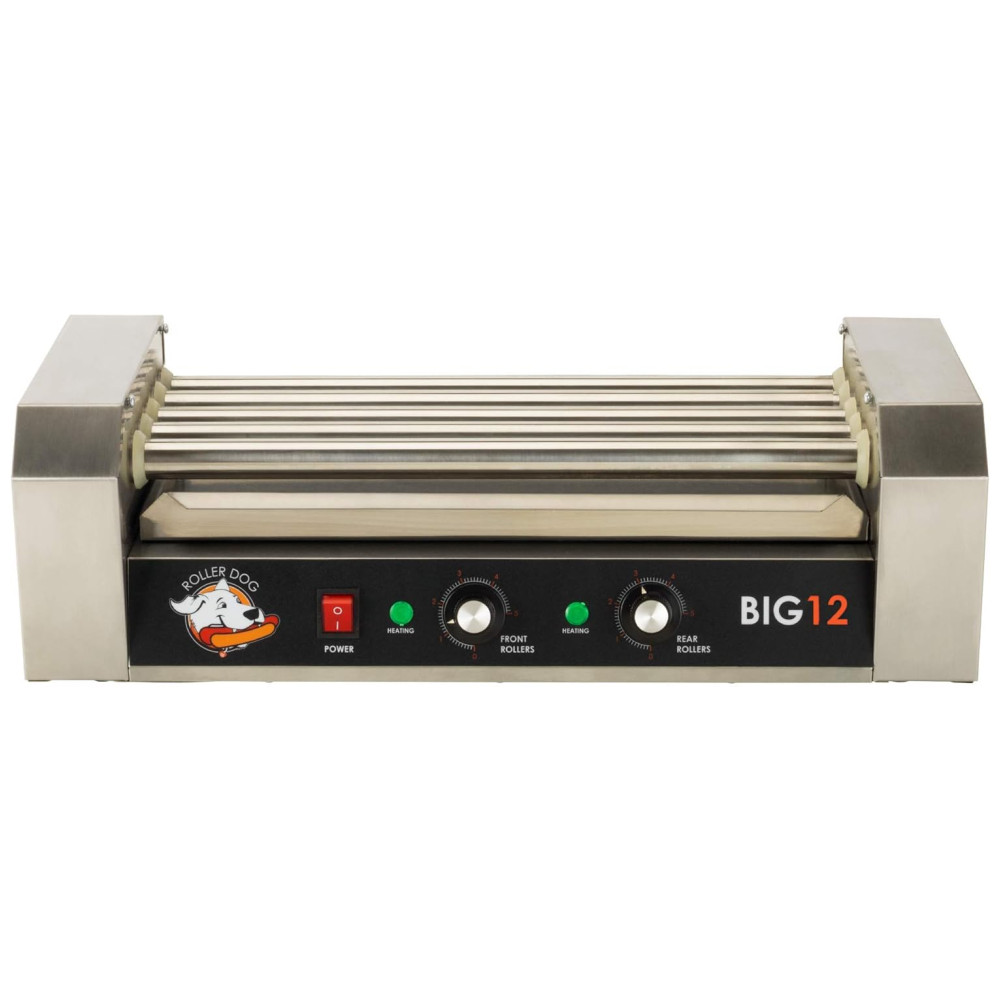 Nome do modelo RollerDog Funtime RDB12SS Aço inoxidável antiaderente Hot Dog Roller Grill com bandeja coletora e controles de temperatura duplos