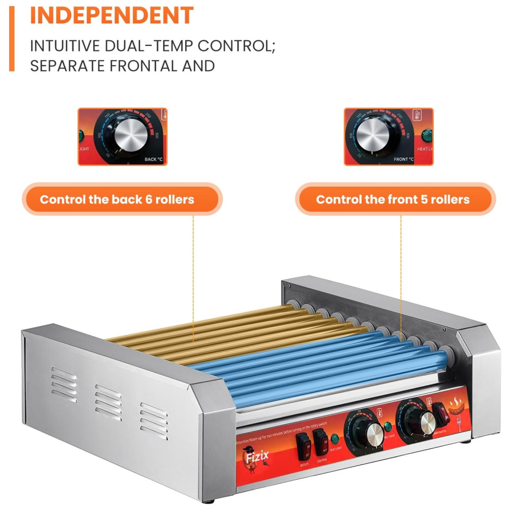 Com dois botões de controle de temperatura, você pode personalizar o cozimento de acordo com suas necessidades. A capacidade de aumentar o calor separadamente para 572 F nos primeiros 5 e últimos 6 rolos permite um cozimento contínuo e perfeito na frente e mantém os alimentos cozidos aquecidos na parte de trás. Isso garante que seus cachorros quentes estejam sempre na temperatura perfeita para servir, exatamente quando você precisa deles.