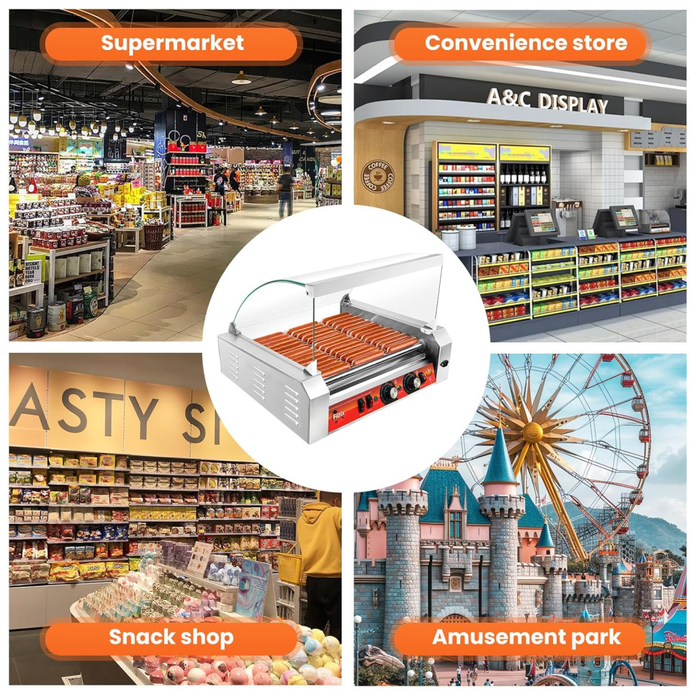 Esta máquina de cachorro quente é versátil e pode ser usada em diversos ambientes, desde lanchonetes e restaurantes até festas em casa e reuniões familiares. Ela não é apenas para cachorros quentes, mas também para salsichas, rolinhos mexicanos e uma variedade de outras guloseimas que podem ser preparadas com perfeição. É essencial para qualquer serviço de alimentação ou ambiente de celebração.