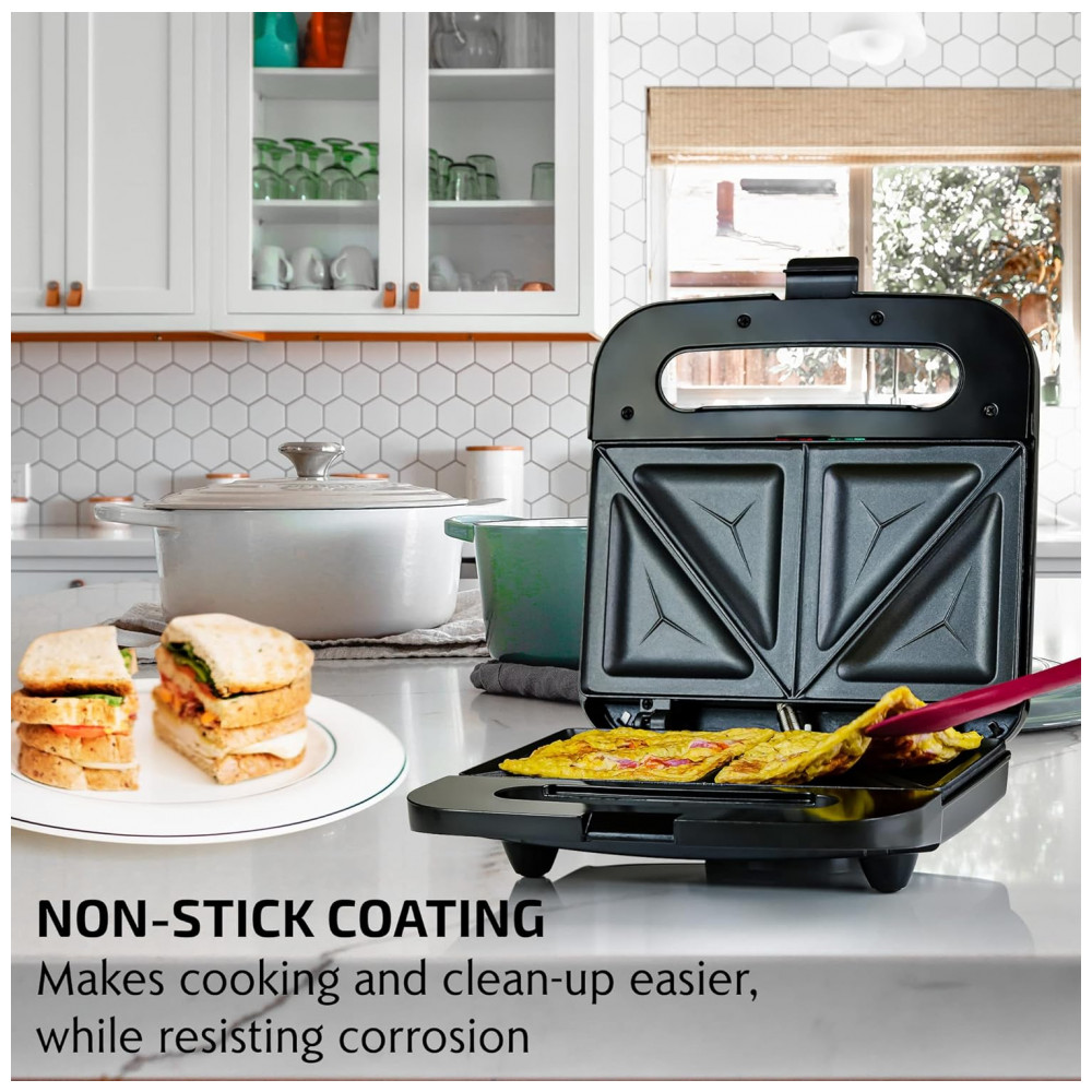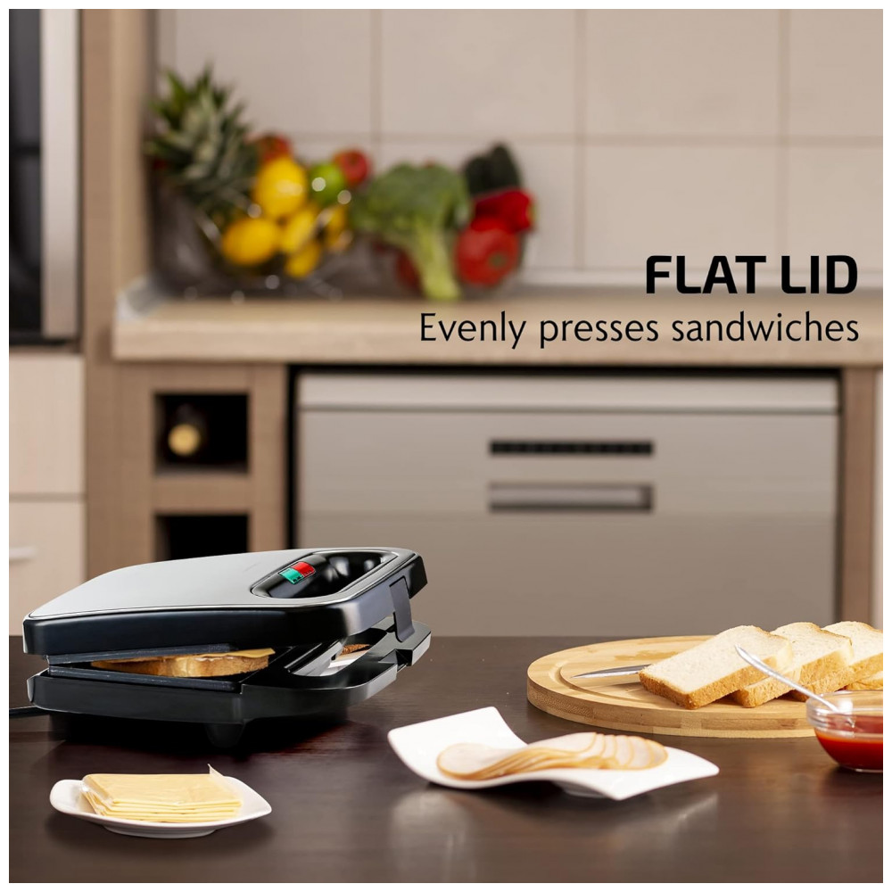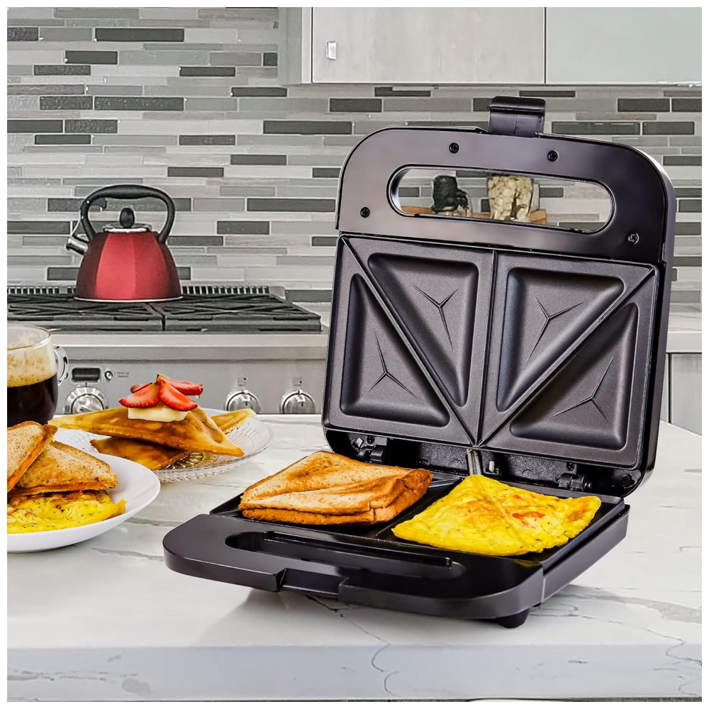 Sacia seu estômago faminto e saboreie uma delícia rapidamente. Em apenas alguns minutos, você pode fazer sanduíches em casa a qualquer hora com a Máquina de Sanduíche Elétrica OVENTE. Com 750 watts de potência a 120 Volts, aquece rápido. O corpo é de aço inoxidável que não se deforma facilmente nem enferruja, resistindo bem ao calor intenso. Prepare os favoritos da família como sanduíches de queijo grelhado e pizza. Monte os ingredientes, preaqueça a máquina, unte as placas com manteiga e coloque o pão. Após o uso, limpe facilmente as placas antiaderentes. SANDUÍCHES QUENTES EM MINUTOS. Economize tempo de manhã preparando sanduíches gourmet tostados. FÁCIL E EFICIENTE. Feita de aço inoxidável resistente ao calor com elemento de aquecimento rápido. Luzes indicadoras mostram quando está ligada e pronta para uso. LIMPEZA SEM COMPLICAÇÕES. O revestimento antiaderente permite liberação de alimentos sem danificar o pão. Compacta e leve, perfeita para pequenos espaços. MÁXIMA SEGURANÇA. O cabo isolado evita superaquecimento. Pés antiderrapantes para evitar acidentes.