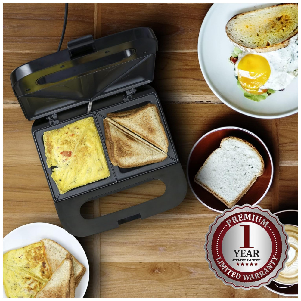 Máquina de Sanduíche Elétrica OVENTE com Placas Antiaderentes Luzes Indicadoras Cabo Isolado Fácil de Limpar e Armazenar