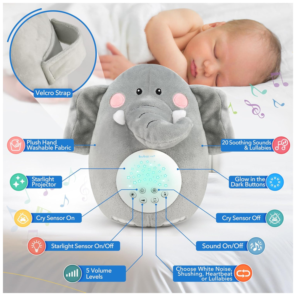 Máquina de Som Ruído para Bebês Recém Nascidos com Luzes Elefante BUBZI CO Cinza