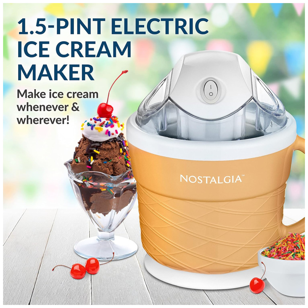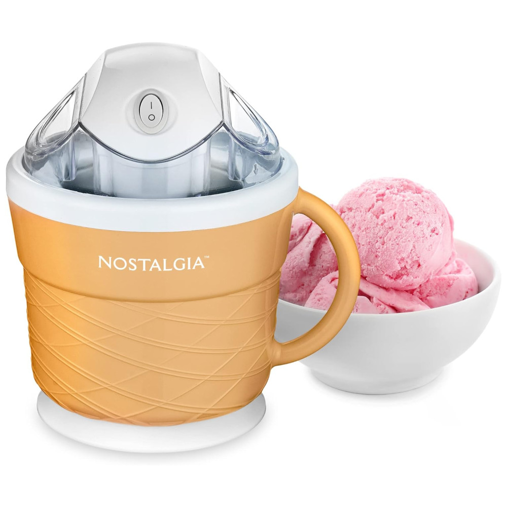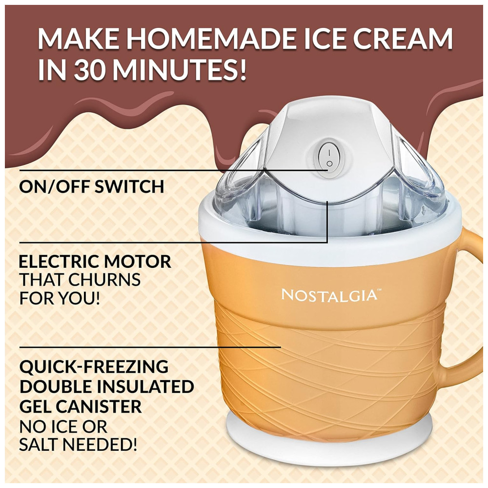 Máquina de Sorvete 14L Que Faz Iogurte Congelado ou Gelato em Minutos 110V Nostalgia Laranja