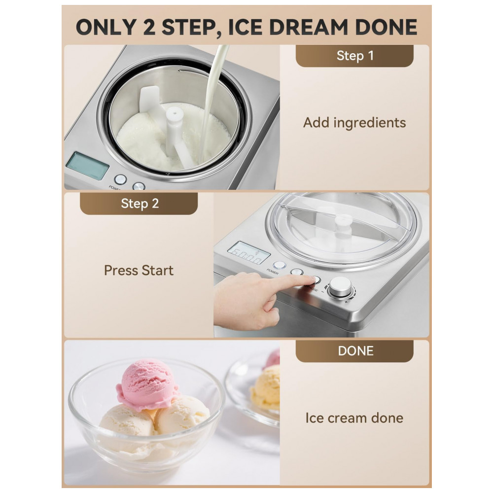 Com três modos versáteis – resfriamento, agitação e manter frio – você pode preparar uma variedade de sobremesas frescas e saborosas. O visor LCD intuitivo, juntamente com os botões e temporizador, torna a operação simples e amigável.
