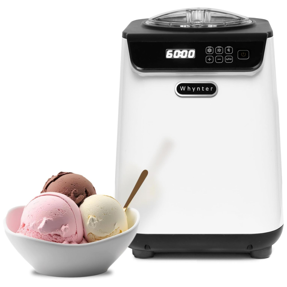 Máquina de Sorvete Automática 12L com Visor Digital LCD Temporizador Sem Pré-Congelamento e Compressor Integrado 110V Whynter ICM-128WS Branca