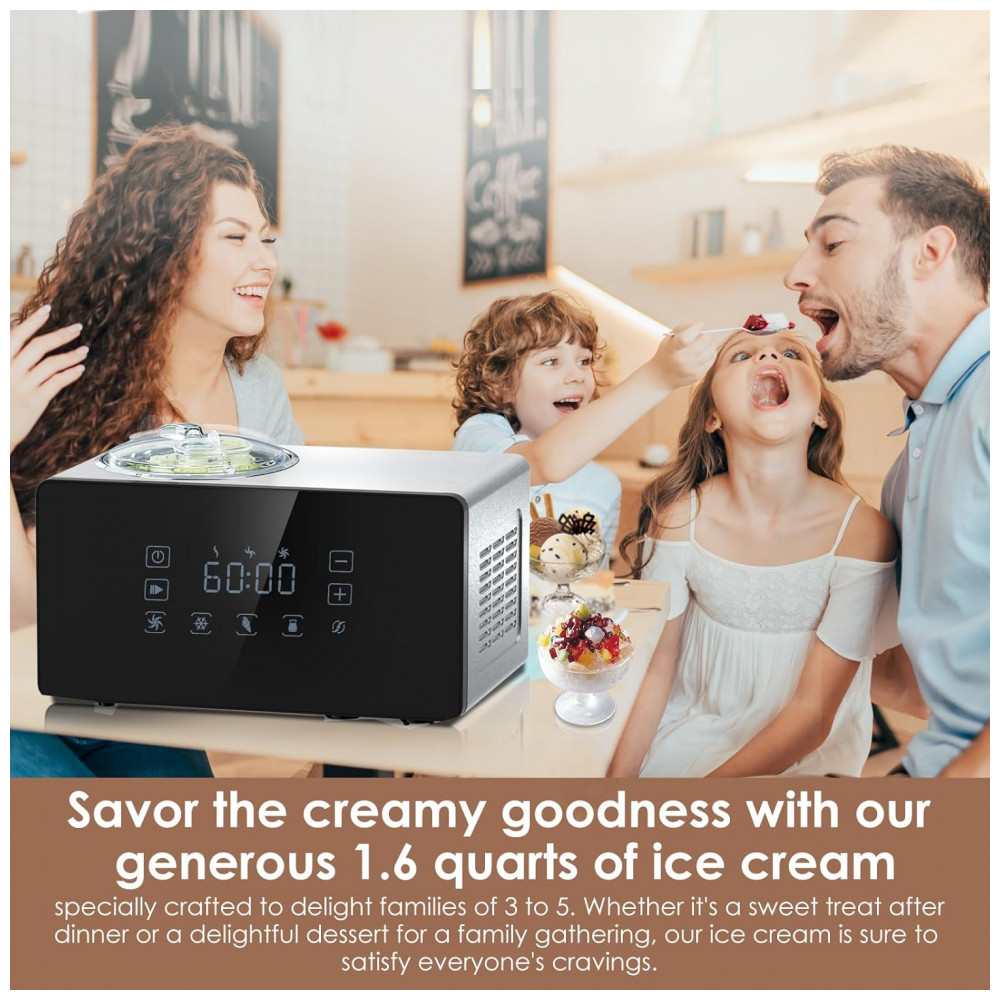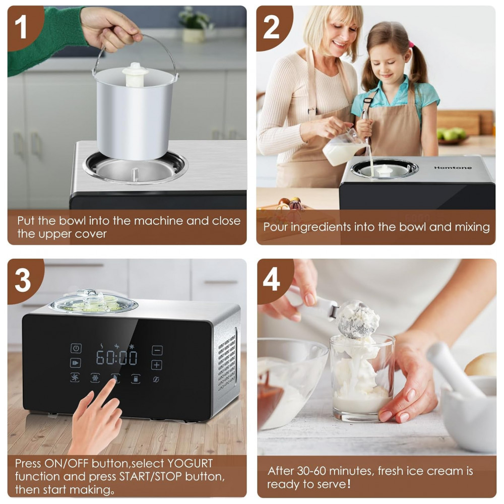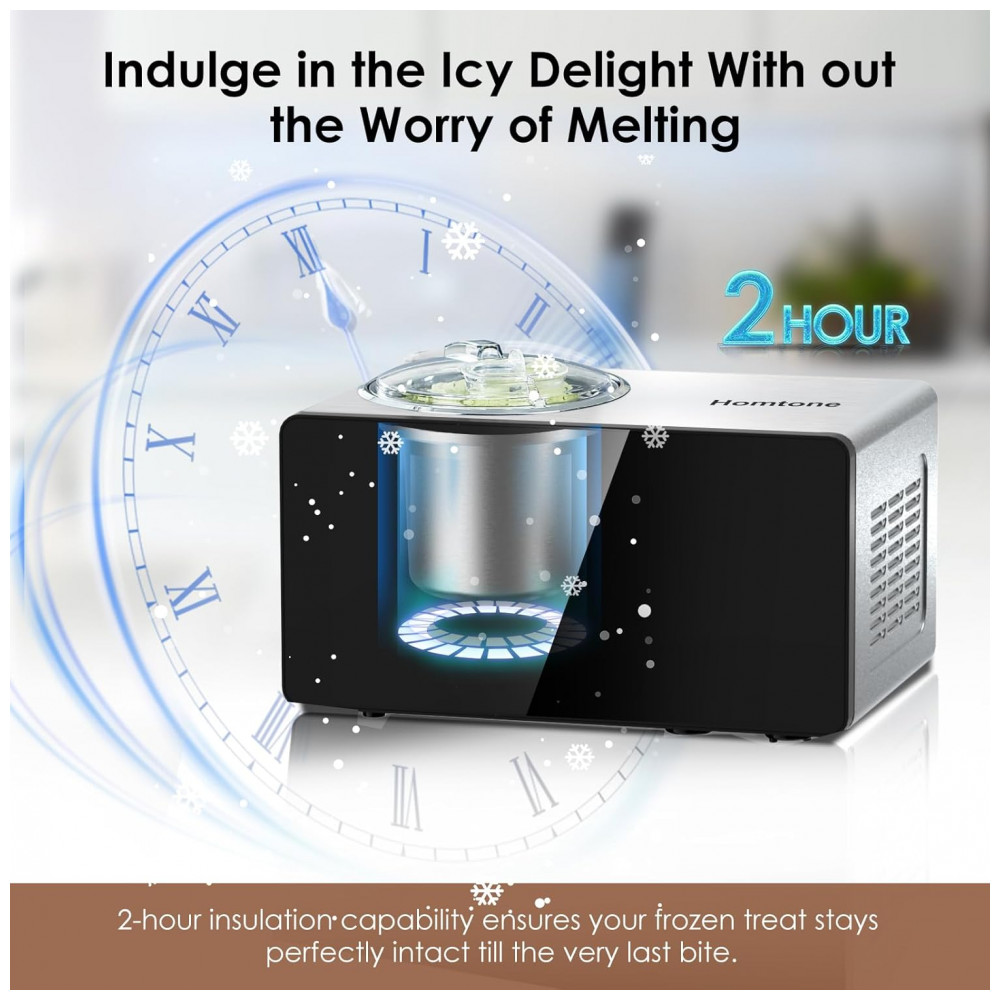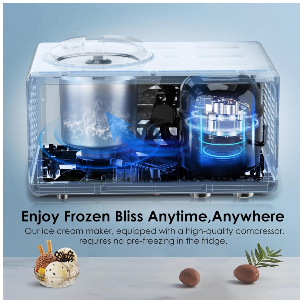 Com a sorveteira Homtone, desfrute de sorvetes caseiros em apenas 30 60 minutos, graças ao compressor embutido. Acabe com as longas esperas e satisfaça seus desejos de sorvete com rapidez e facilidade, sem a necessidade de pré congelamento.