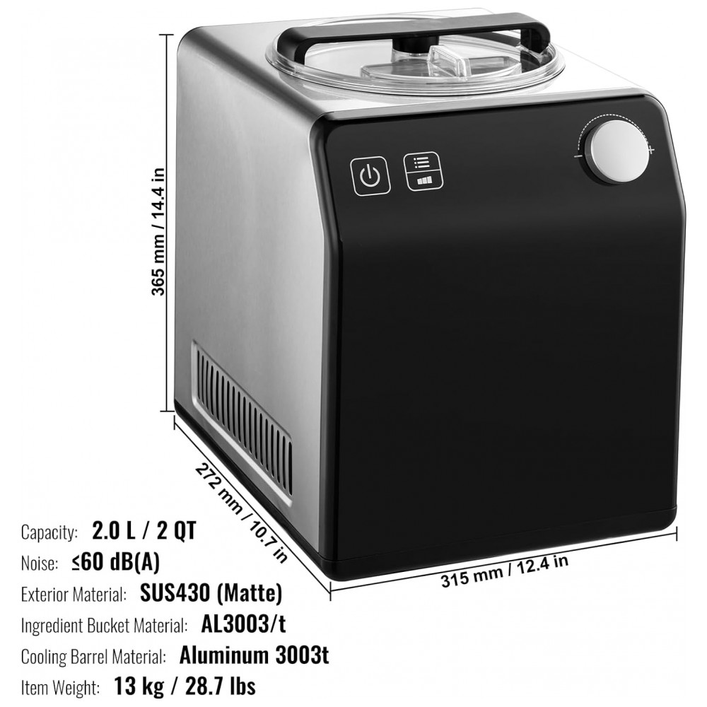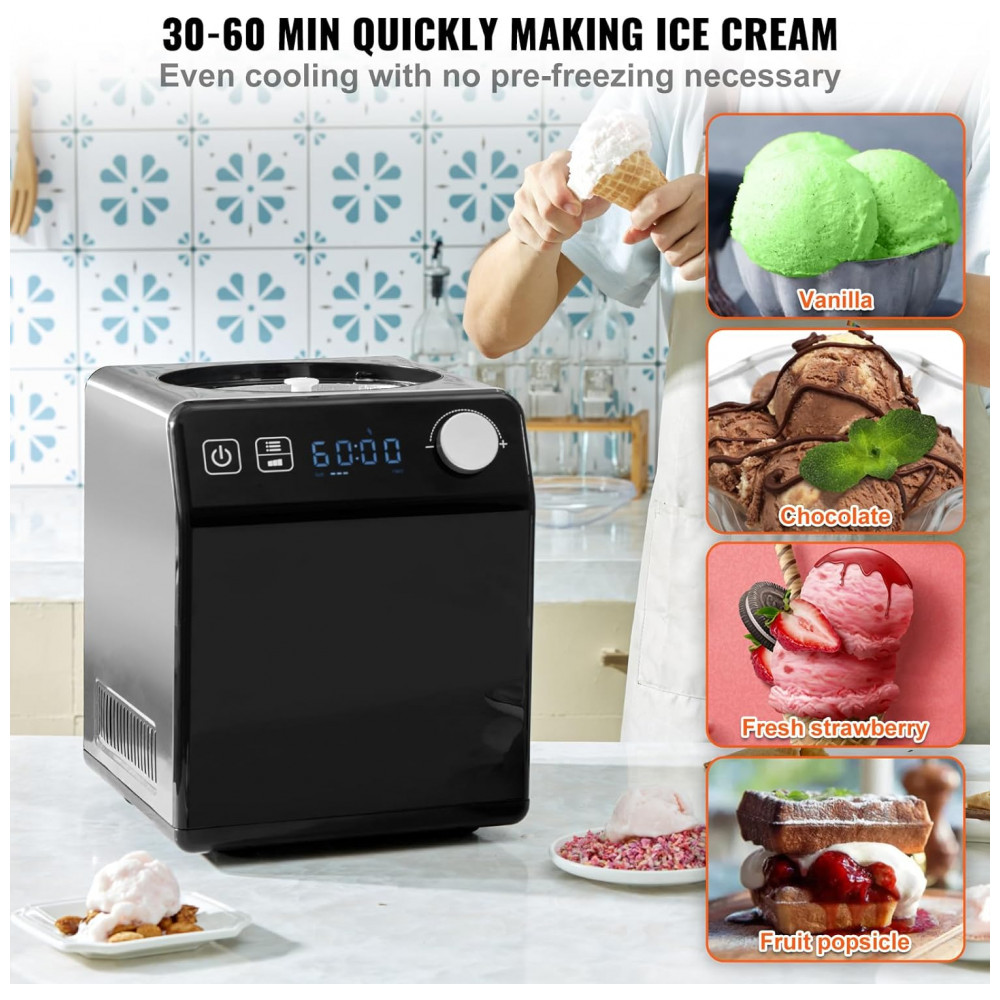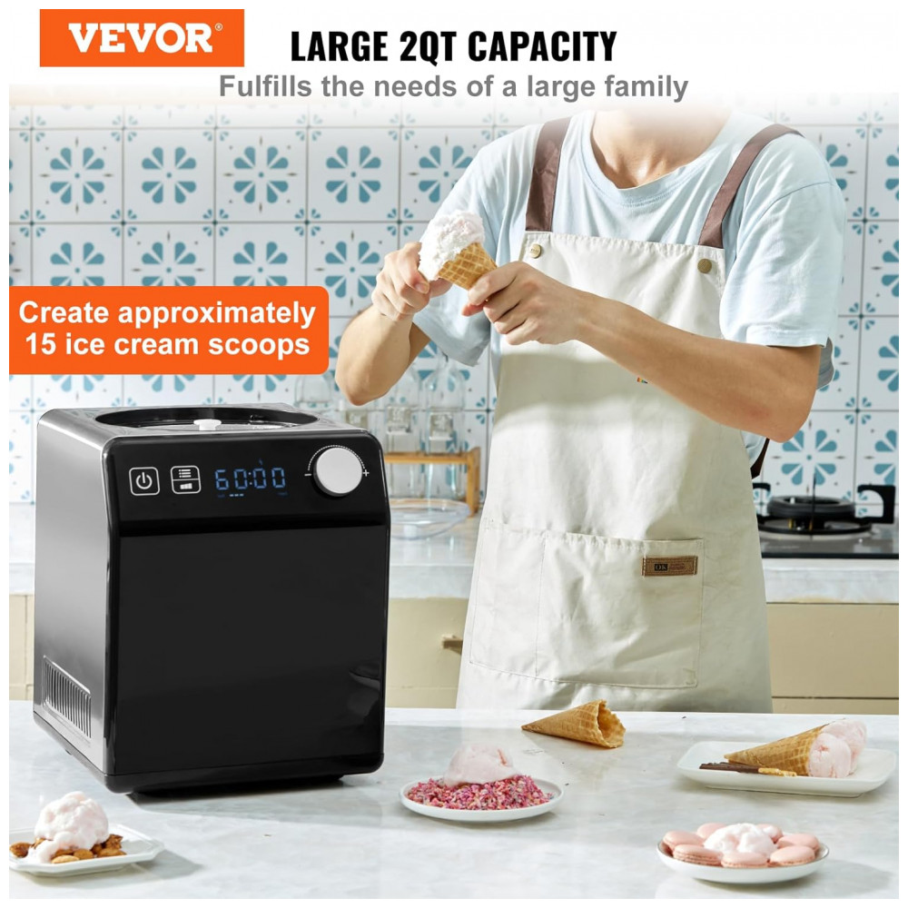 Máquina de Sorvete Automática 18L com Compressor Embutido 4 Modos Temporizador e Painel Digital Vertical VEVOR Preta e Prata
