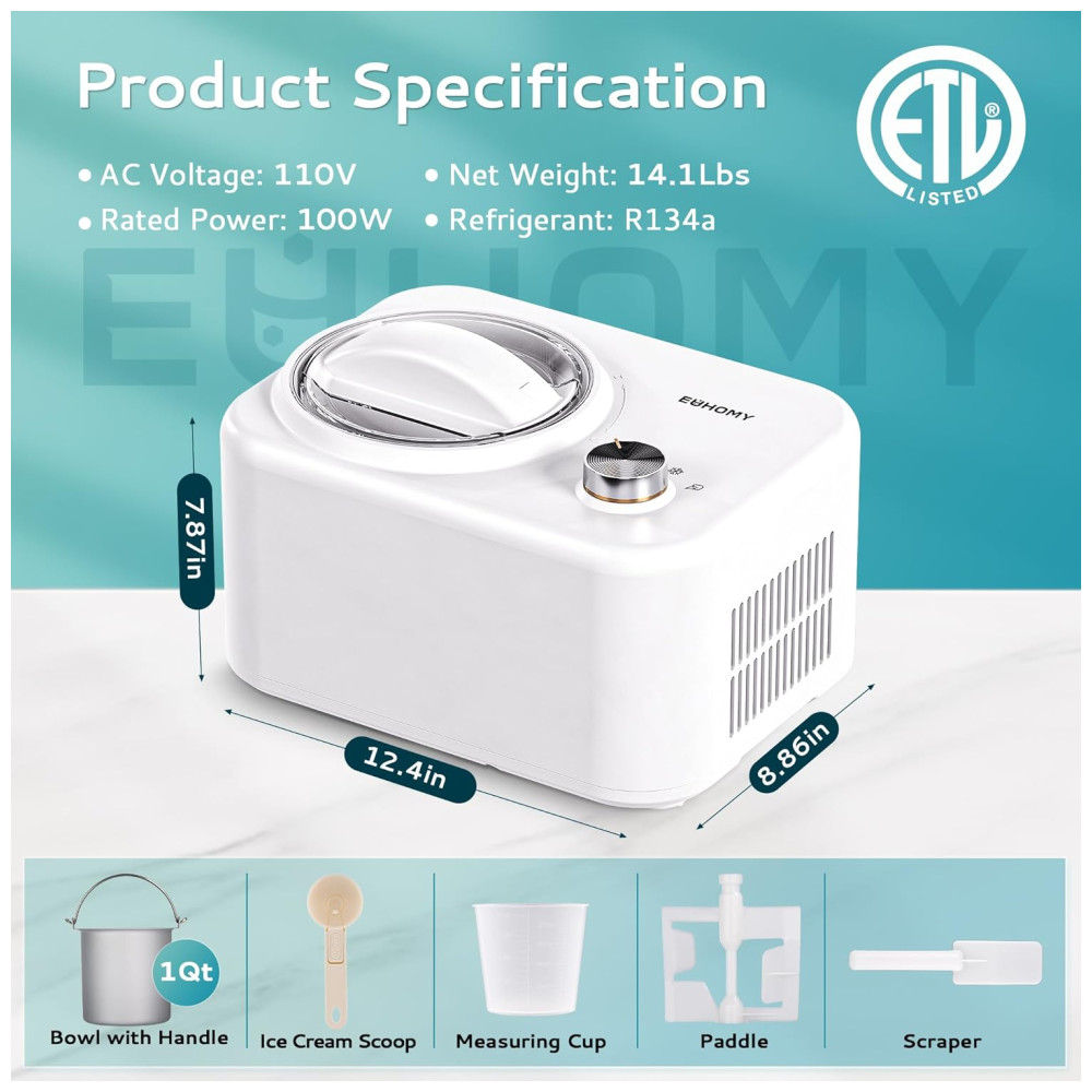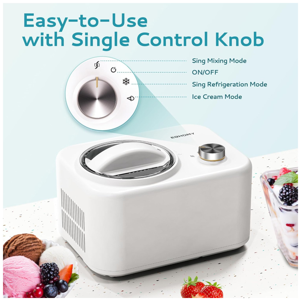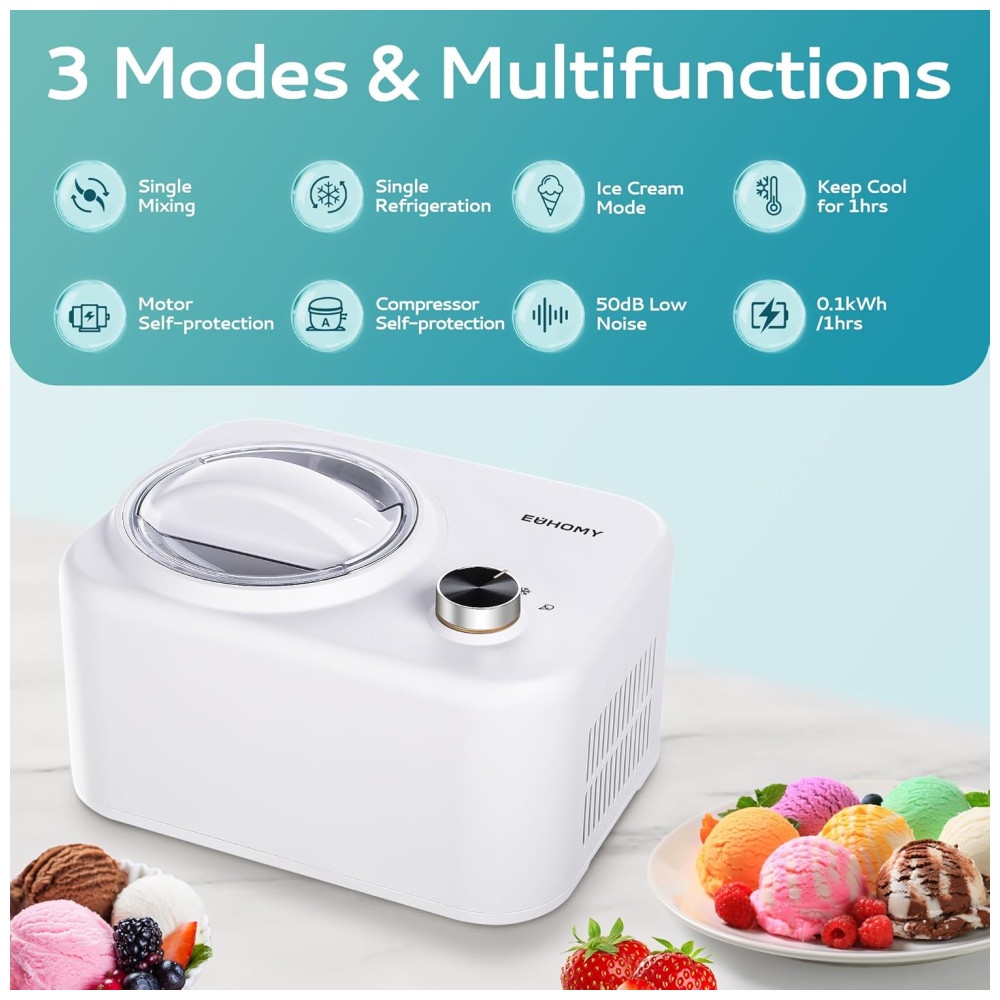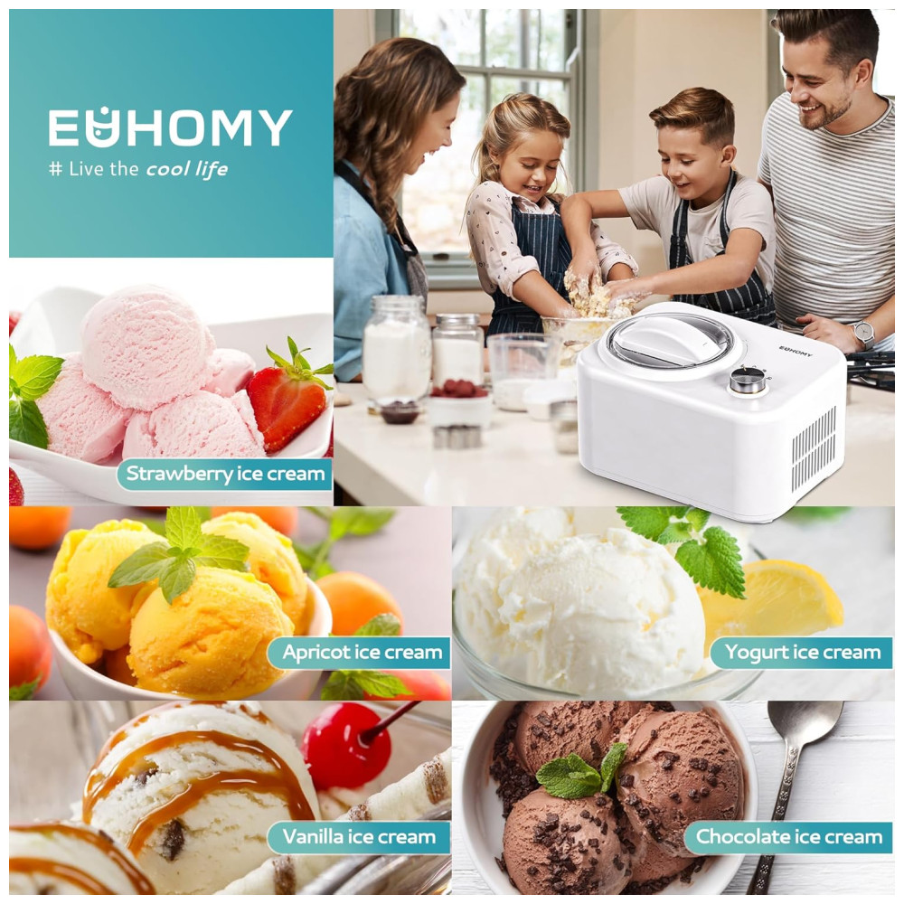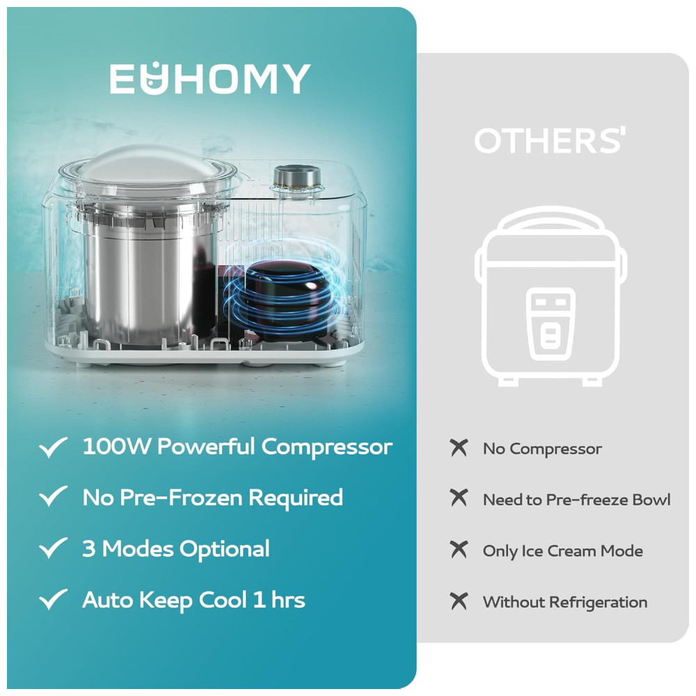 Máquina de Sorvete Automática 1L com Compressor Embutido 3 Modos e Função Keep Cool EUHOMY Branca