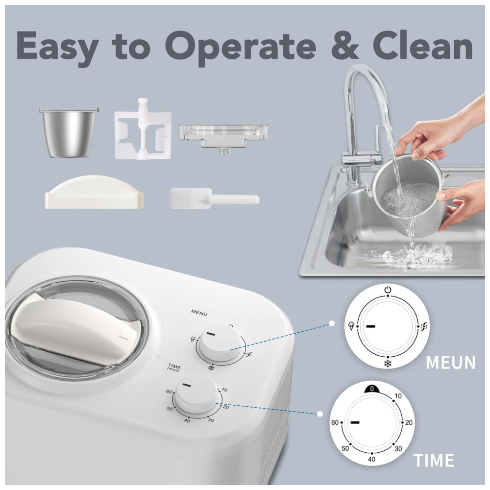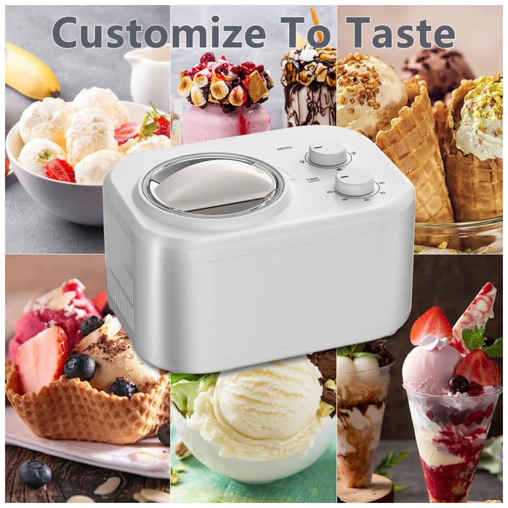 A tigela removível facilita a limpeza, enquanto o design elegante em aço inoxidável e o painel de controle LCD sensível ao toque garantem conveniência e um visual sofisticado para sua cozinha. Além disso, a máquina opera de forma silenciosa, permitindo que você desfrute de sobremesas deliciosas sem perturbar a tranquilidade do ambiente.