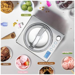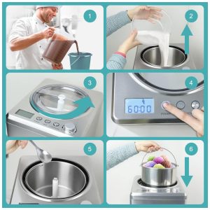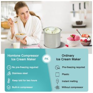 Com uma tigela de aço inoxidável de 2,5 litros, a Homtone Ice Cream Maker é ideal para preparar pequenas porções para degustação ou grandes quantidades para toda a família. Ela é capaz de produzir até 4 a 7 porções de sorvete de uma só vez, permitindo criar uma ampla variedade de sabores, como sorvetes de frutas, gelatos, granizados e muito mais.