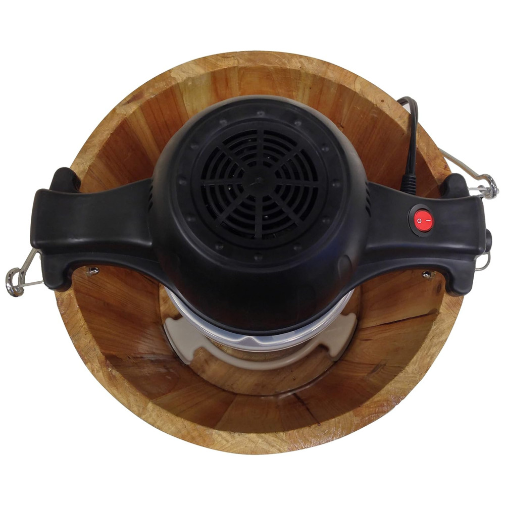 ETL APROVADO 50 watts , 120 V para uso doméstico na cozinha. Inclui motor elétrico, balde de madeira com alça, anel de estabilização, vasilha de congelamento com entalhe, tampa e tampa da vasilha, agitador, pá dasher e manivela de molde fundido bônus