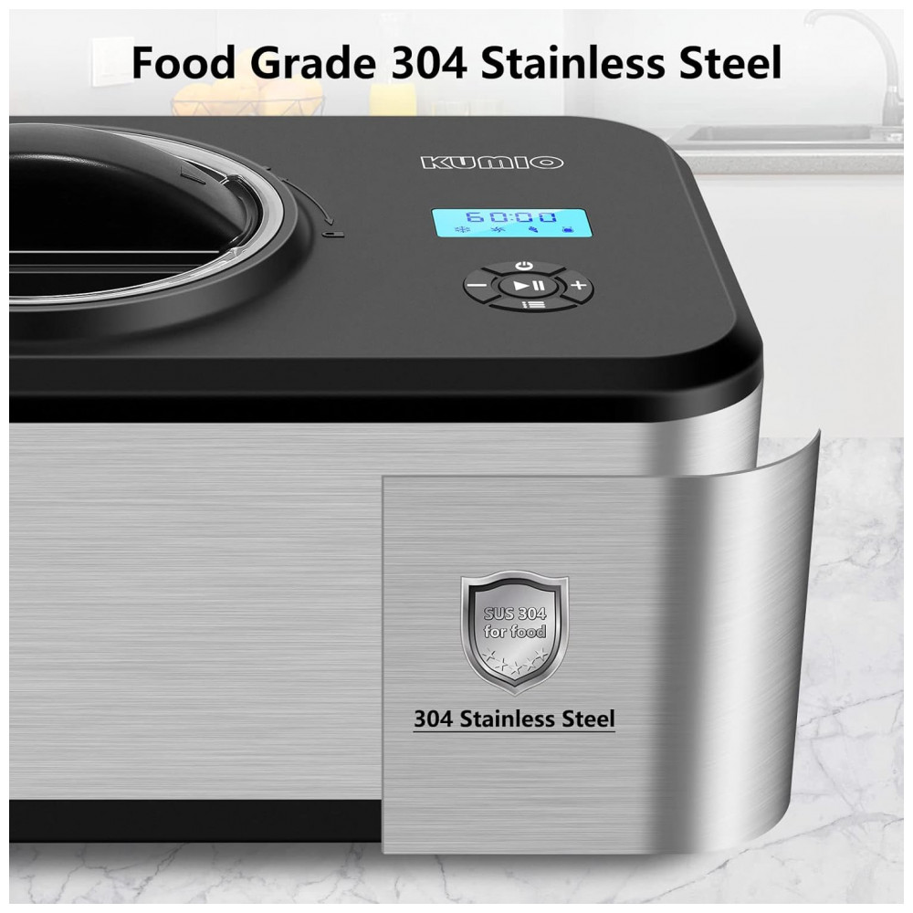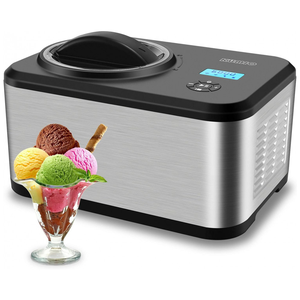 Máquina de Sorvete Automática em Aço Inoxidável Capacidade 15L e Tela LCD 110V 150W KUMIO Prata