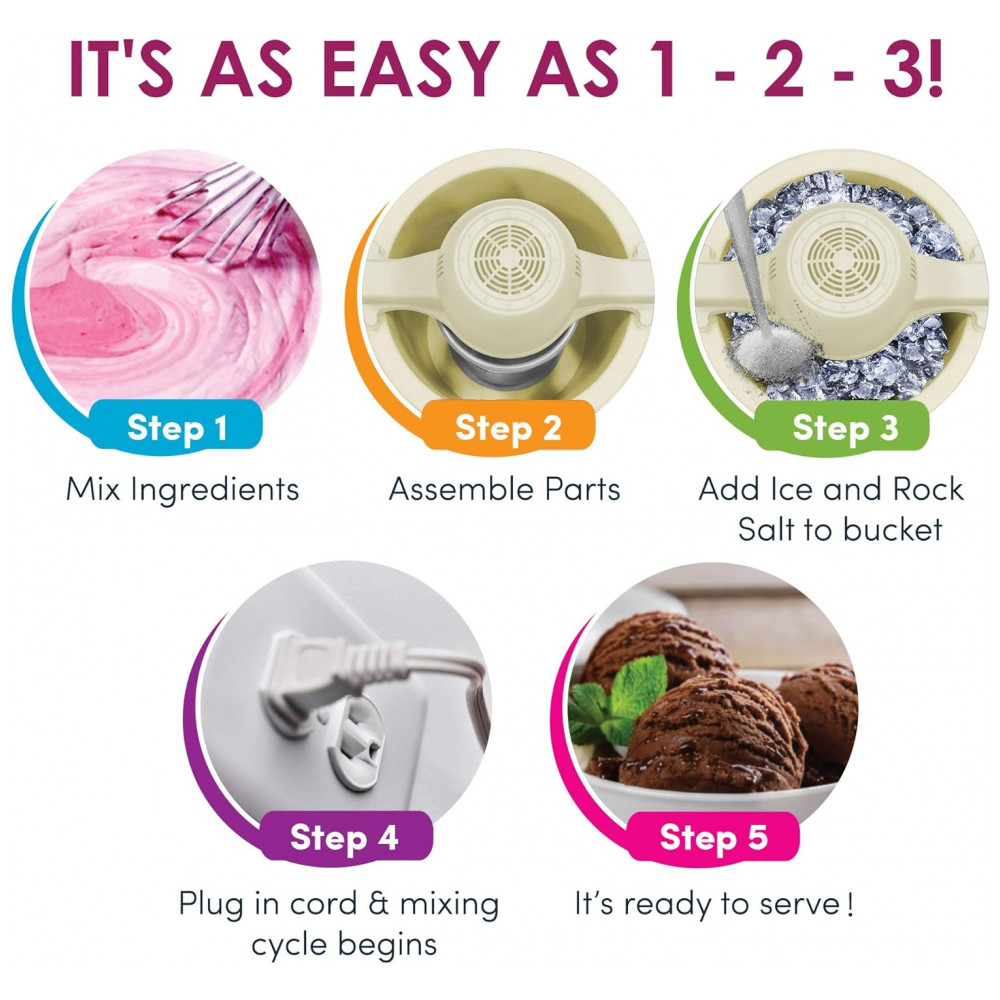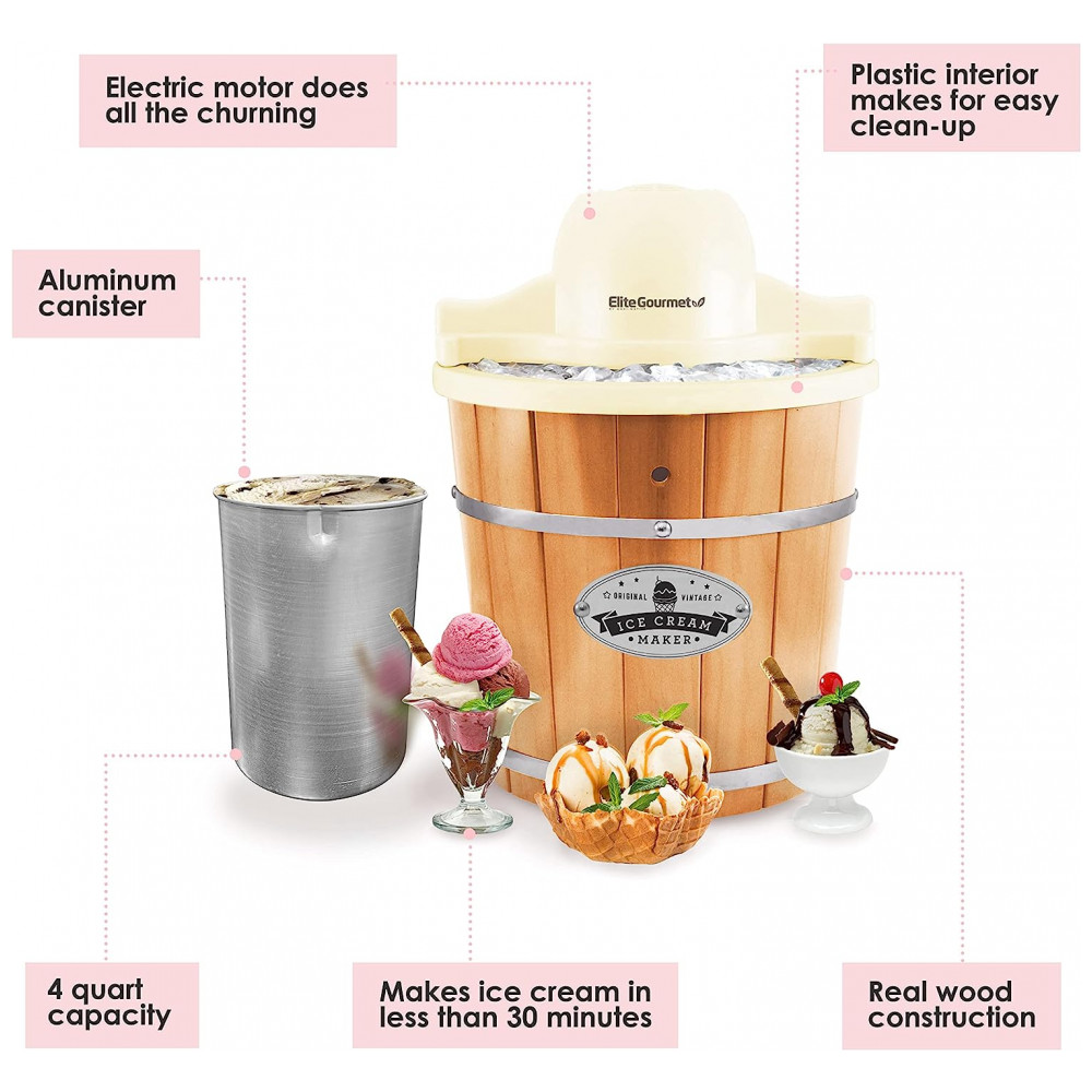 Faz 4 litros de sorvete frio e cremoso, gelato, iogurte congelado ou sorbet.