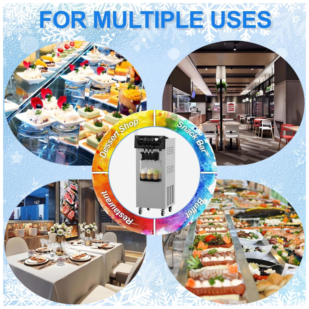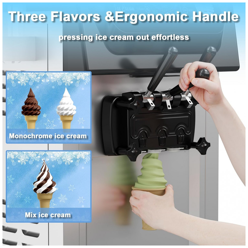 Máquina de Sorvete Comercial PioneerWorks Prata 3 Sabores 2200W Compressor Duplo 7L x 2 LCD Automática Alta Produção 220V