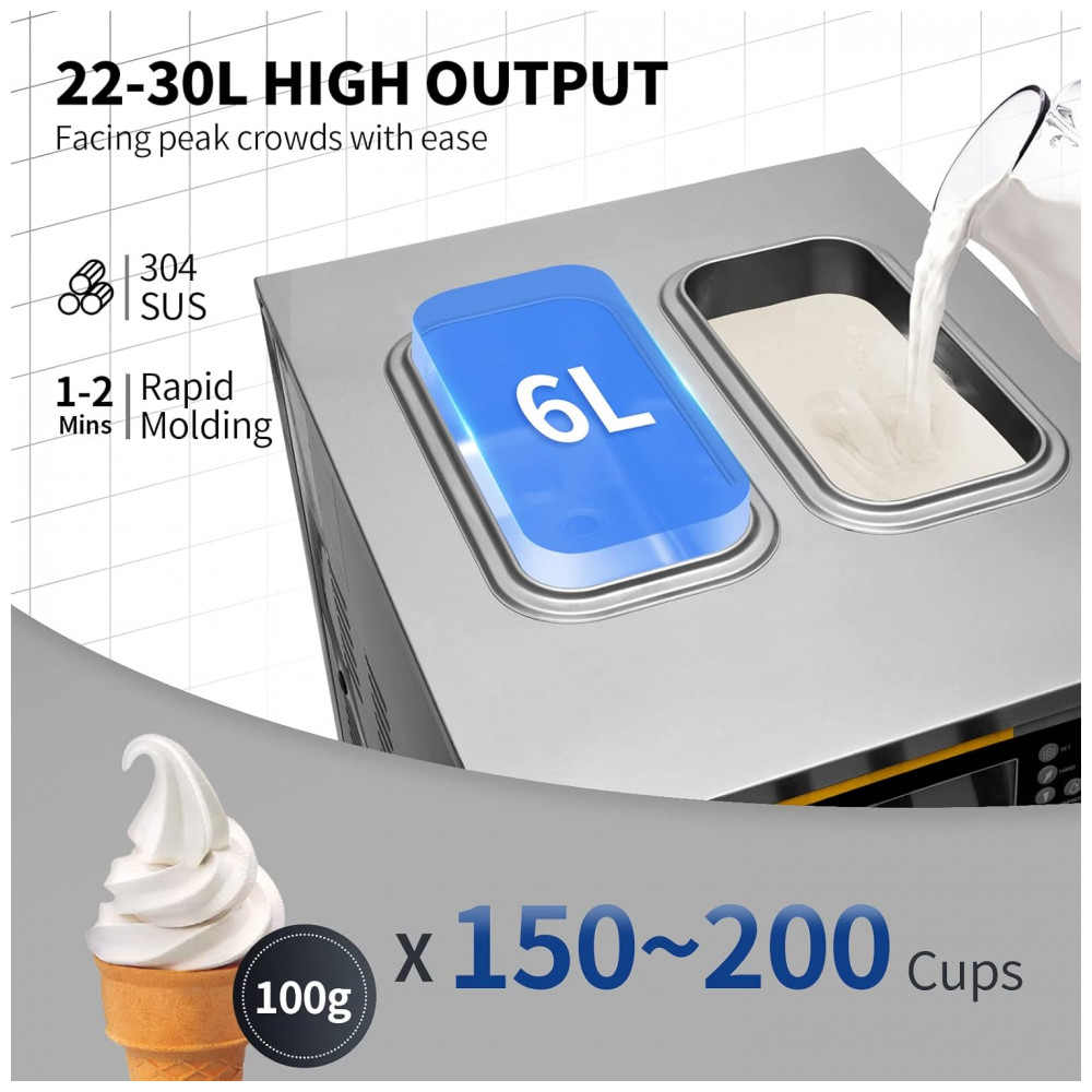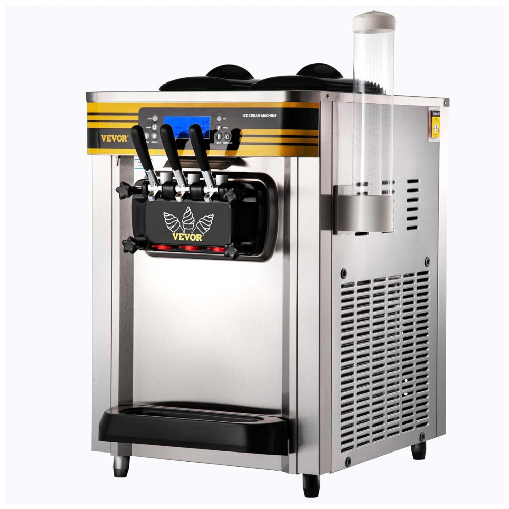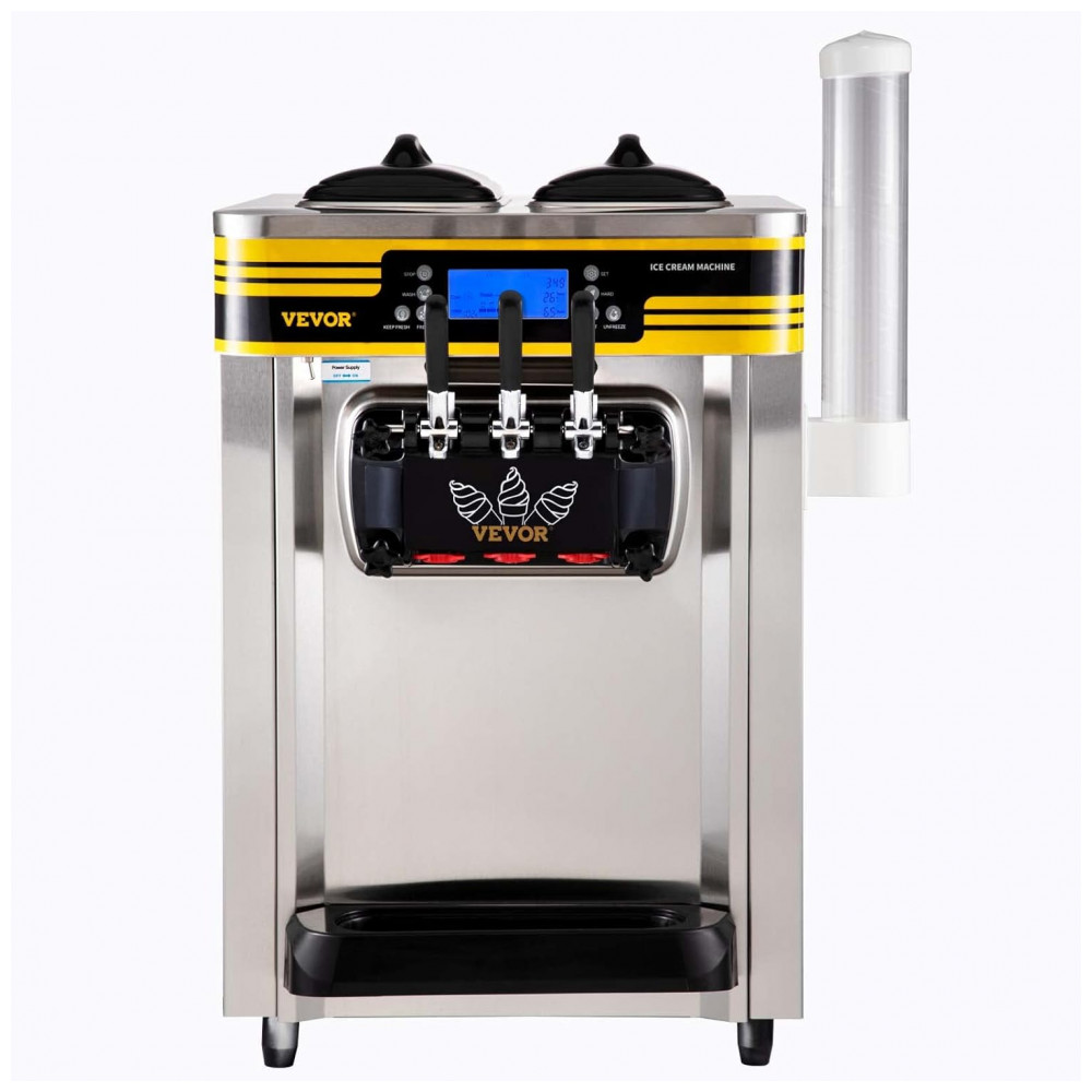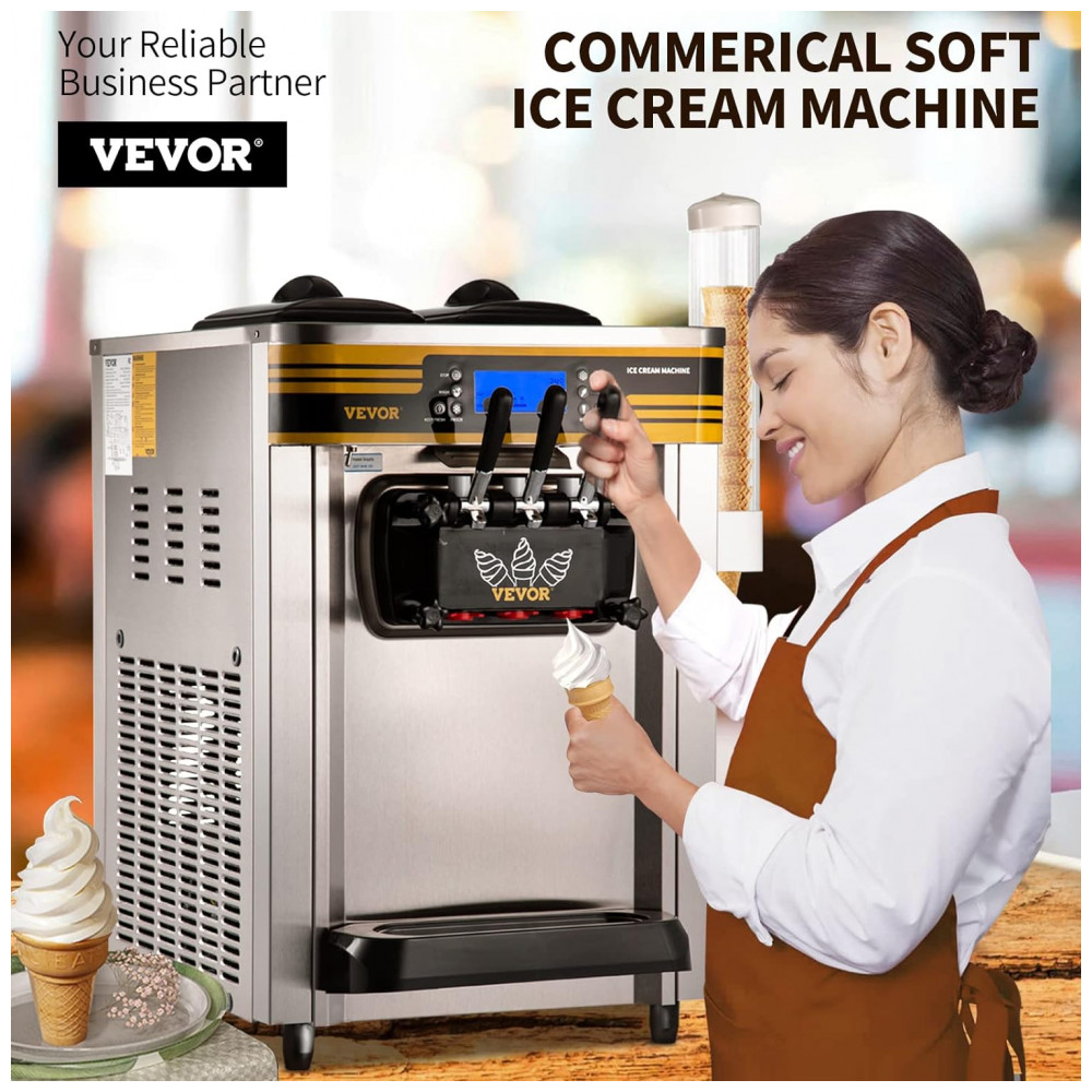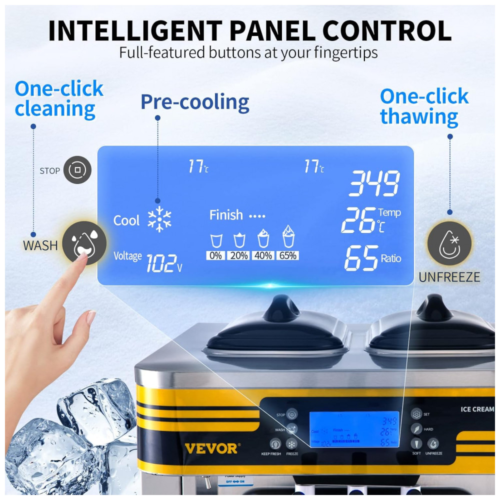 Máquina de Sorvete Comercial VEVOR Produção de 22-30LH Máquina Soft Serve de Bancada de 2350W com 2 Recipientes de 6L e Cilindro de 2L Painel LCD