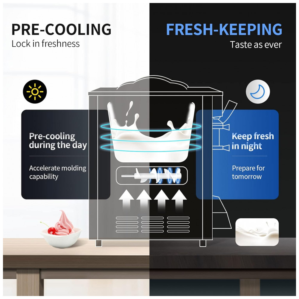 Com a Máquina de Sorvete Comercial da VEVOR, você terá uma produção de 22-30 litros por hora, atendendo até 150-200 porções de sorvete de 100 gramas cada em apenas 1 hora. Com 3 sabores opcionais, oferece a possibilidade de servir 2 sabores individuais e 1 misto, permitindo que seus clientes desfrutem de variedade. A potência total de 2350W garante eficiência e baixo ruído, com um compressor de 1050W. Alertas de falta de ingredientes e funções como pré-resfriamento e descongelamento facilitam o uso e garantem a qualidade do produto. Além disso, seu design compacto de aço inoxidável se adapta perfeitamente a diferentes ambientes comerciais.
