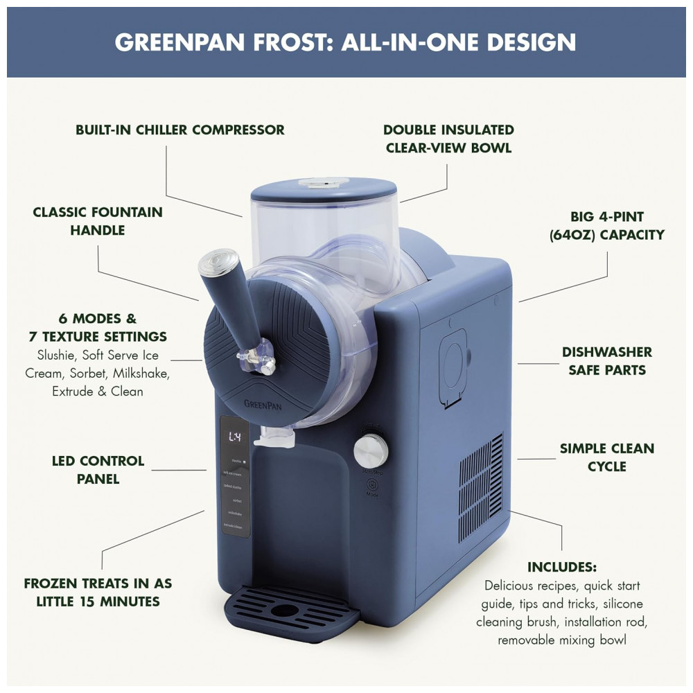 Máquina de Sorvete e Bebidas Congeladas GreenPan Frost Soft Serve Frozen Yogurt Smoothies Milkshakes Coquetéis Sem Necessidade de Congelador