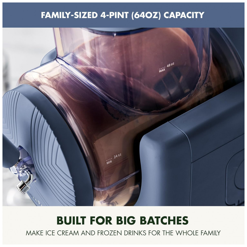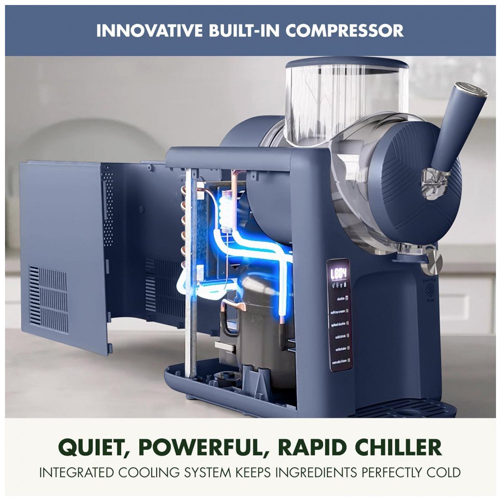 A máquina de sorvete e bebidas congeladas GreenPan Frost 15 em 1 possui um refrigerador embutido silencioso e rápido que leva você de fresco a congelado rapidamente, sem a necessidade de um congelador. Basta misturar, despejar e gelar. Frost congela sob demanda para que você possa desfrutar de sorvete soft serve, sorvete, sherbet, slushies, slushies com álcool, smoothies, milkshakes, frozen cocktails e muito mais em apenas 15 minutos. Com 6 modos diferentes e 7 configurações de textura, você tem total controle sobre cada criação – de leve e fofo a grosso e cremoso. Com a Frost, você controla os ingredientes e pode facilmente criar sobremesas congeladas com menos açúcar, mais proteínas, substitutos de leite e muito mais. Seja fazendo seu sorvete soft serve favorito, um shake clássico, um refrescante slushie ou um smoothie rico em proteínas, você encontrará um modo que se encaixa no momento, e a generosa capacidade de 2QT (1,89 Litros) da Frost será suficiente para toda a família. Recursos atenciosos, como uma tigela de visualização transparente, permitem que você acompanhe a mágica acontecer, enquanto a dupla isolamento ajuda a manter suas sobremesas perfeitamente geladas. Quando terminar, as peças removíveis da Frost e o modo de limpeza simples tornam a limpeza sem esforço. Frost é a maneira mais fácil de criar sorvetes e bebidas congeladas do jeito que você gosta. PRONTA EM APENAS 15 MINUTOS, SEM NECESSIDADE DE CONGELADOR. Frost é um eletrodoméstico de alto desempenho que possui um compressor silencioso embutido para que você possa preparar sobremesas congeladas quando desejar, sem a necessidade de recipientes separados ou congelador. FAÇA DE TUDO. DESIGN 15 EM 1. Frost permite que você crie desde sorvete soft serve clássico, slushies refrescantes, milkshakes, smoothies, shakes de proteína, frozen yogurt, sorvetes sem lactose/vegano, pudim, sorbet, sherbet, coquetéis congelados, mocktails e muito mais, para possibilidades infinitas ao alcance das suas mãos. 6 MODOS VERSÁTEIS, 7 CONFIGURAÇÕES DE TEXTURA. Selecione facilmente o modo Slushie, Sorvete Soft, Slushie com Álcool, Sorbet, Milkshake e ExtrudeClean. Em seguida, escolha entre 7 texturas diferentes, de cremoso e suave a firmes e espessos. Cada receita no folheto incluído apresenta modos sugeridos para a colher perfeita e ainda mais dicas para ajudar a obter o resultado perfeito. RÁPIDA E SILENCIOSA, COM REFRIGERAÇÃO EMBUTIDA. Basta adicionar seus ingredientes, selecionar o modo e textura, e desfrutar de sua sobremesa congelada em apenas 15 minutos sem barulho. MODO DE AUTOLIMPEZA FÁCIL. Selecione ExtrudeClean e deixe as lâminas de agitação fazerem o trabalho. Coloque uma tigela sob a cabeça, dispense qualquer sobra, adicione água morna com uma gota de sabão até a linha de enchimento máximo. As lâminas giram e ficam de molho para uma limpeza rápida – repita o ciclo uma ou duas vezes até que a unidade esteja completamente limpa e pronta para uso. FAÇA DE FORMA SAUDÁVEL. Troque facilmente por substitutos saudáveis e com poucas calorias para criar sobremesas sem culpa que atendam às suas preferências alimentares, como proteína em pó, iogurte grego, leites sem lactose e muito mais. CAPACIDADE FAMILIAR. Perfeita para crianças de todas as idades, a generosa capacidade de 2QT (64oz) permite que você faça bebidas congeladas e sorvete para toda a família. TUDO O QUE VOCÊ PRECISA E MAIS UM POUCO. A Máquina de Sorvete Frost vem com uma tigela de mistura removível, haste de instalação, pincéis de limpeza silicone e cerdas, bolsa de acessórios, 2 tampas de extrusão em espiral e 2 juntas de cabeça de extrusão, além de um livreto de receitas, guia de início rápido e dicas de especialistas para você começar. MANTENHA-O GELADO. Observe suas criações congeladas através da tigela transparente e saiba sempre quando é hora de mais uma colherada ou gole perfeito. FÁCIL DISPENSAÇÃO, SWIRLS PERFEITOS. A alça estilo fonte permite que você sirva com precisão, enquanto a ponta em estrela incluída cria aquele visual característico do soft serve.