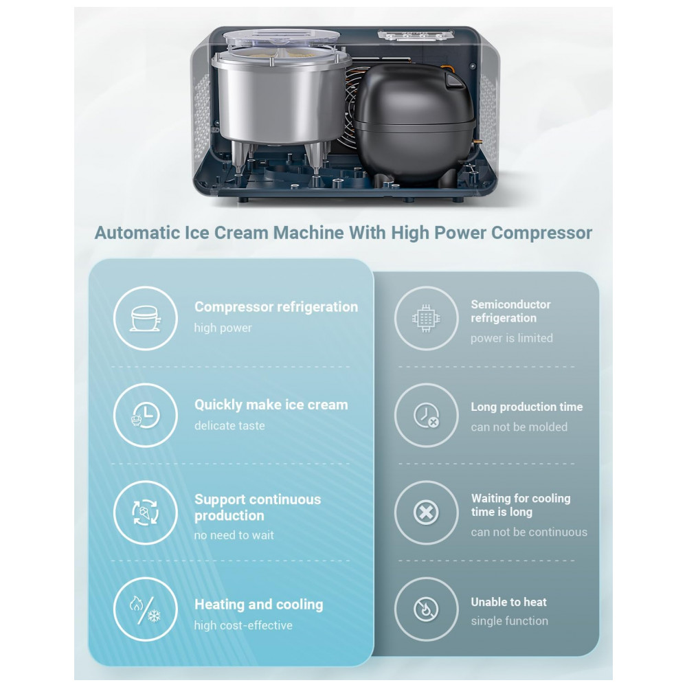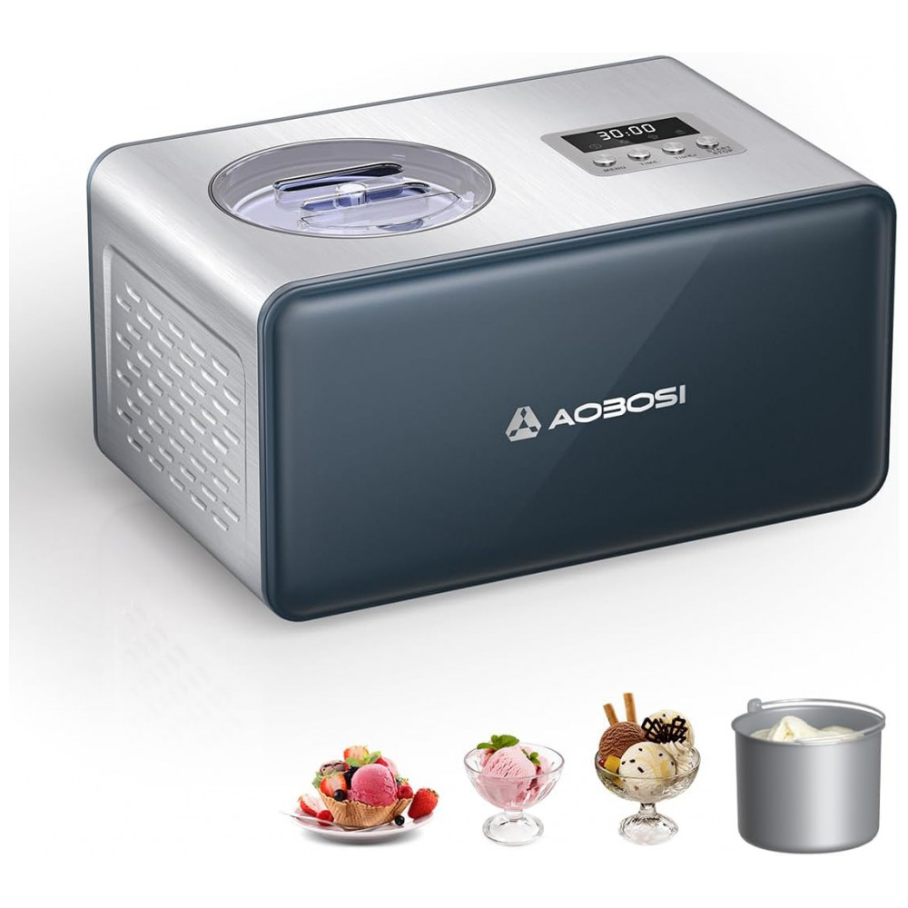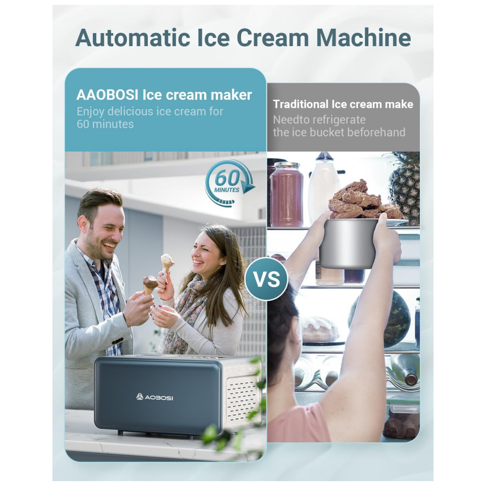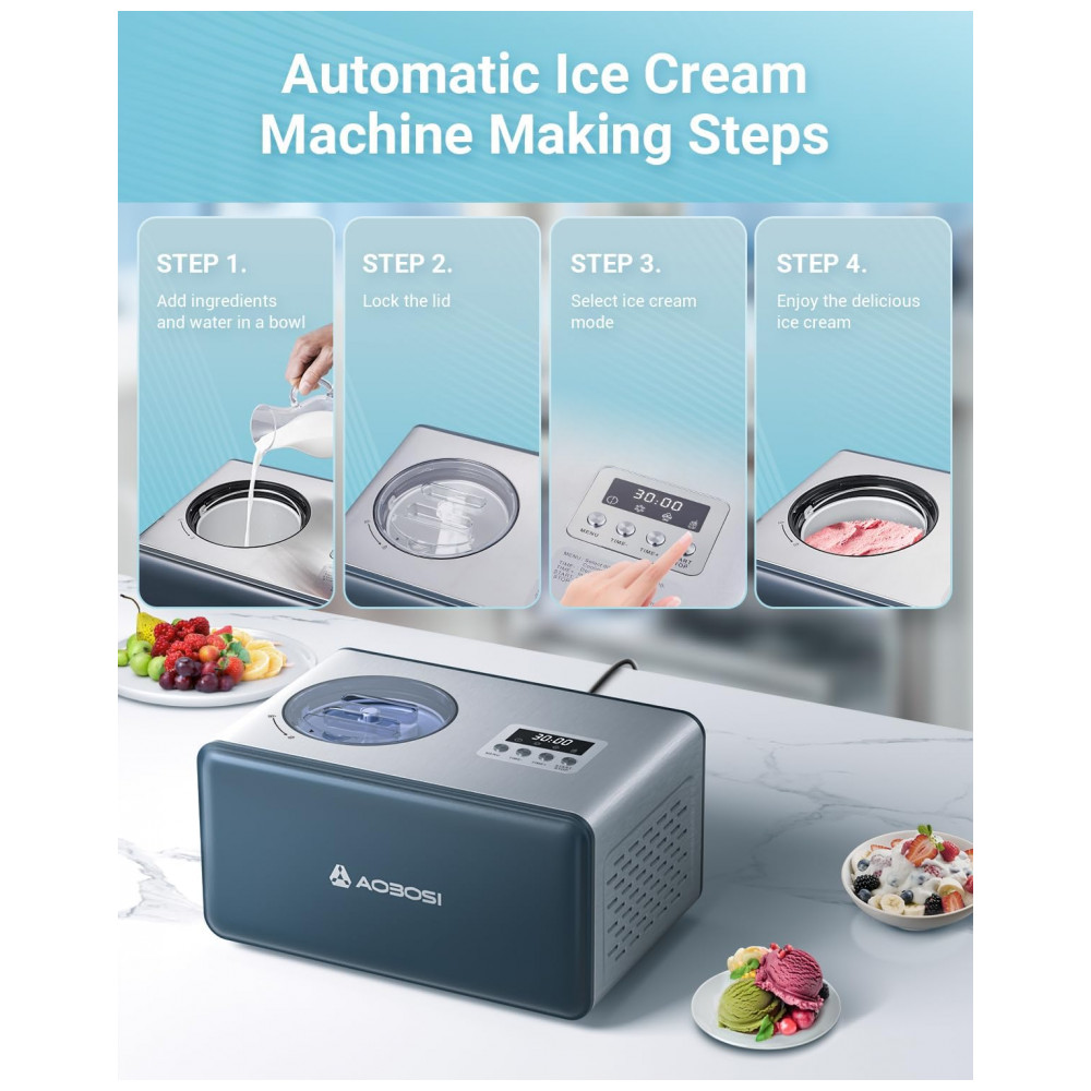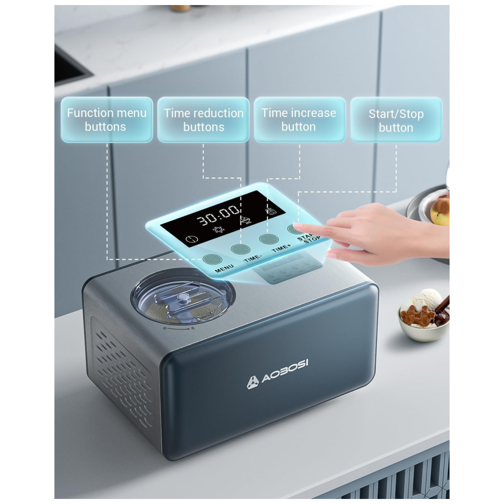 Máquina de Sorvete Elétrica AAOBOSI com Compressor Aço Inoxidável 4 Modos Sem Pré-congelamento 15 L ABS-ice cream-82-text 150W