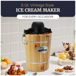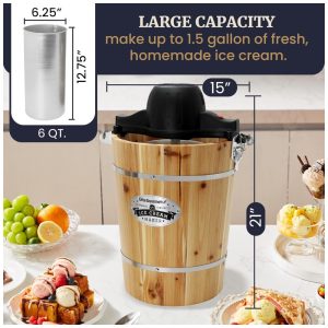 Nome do Modelo: Elite Gourmet Old Fashioned 6 Quart Vintage Wood Bucket Electric Ice Cream,