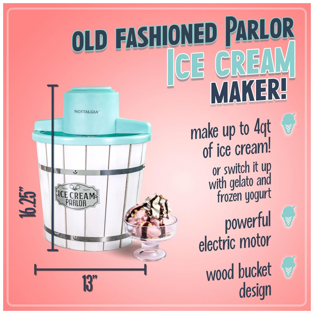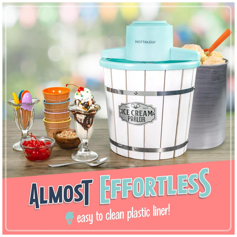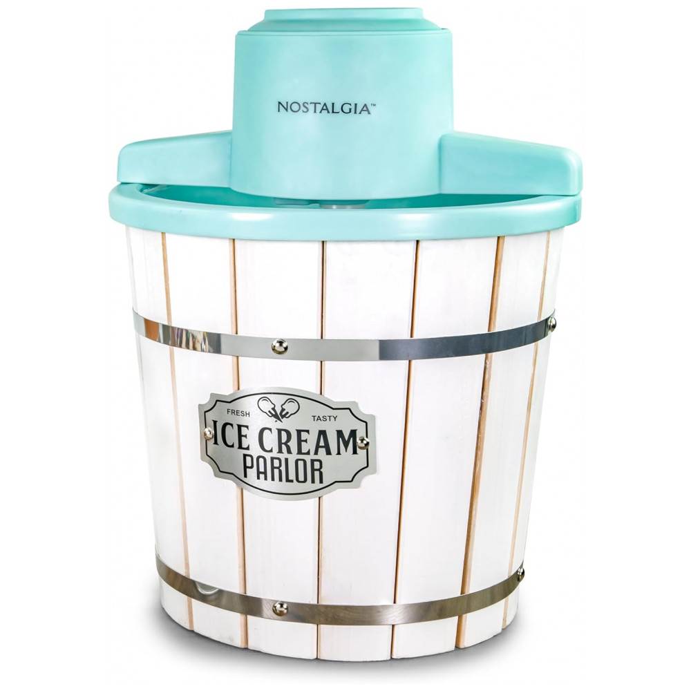 Máquina de Sorvete Elétrica Nostalgia com Balde de Madeira Estilo Parlor Máquina de Sorvete Macio Antiga que Faz Frozen Yogurt ou Gelato em Minutos