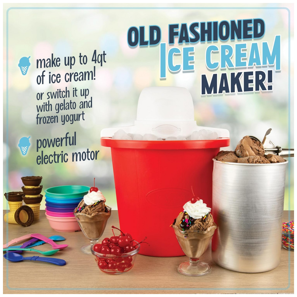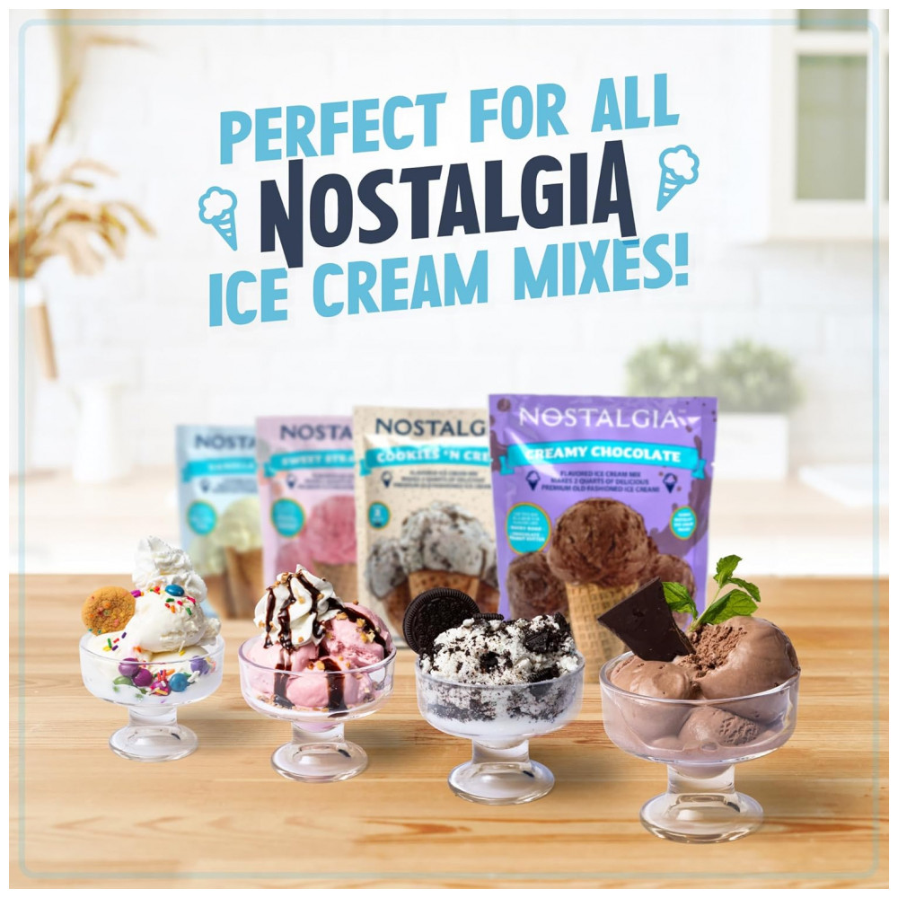Máquina de Sorvete Elétrica Nostalgia Estilo Parlor Faça Sorvetes Cremosos Frozen Yogurt ou Gelato em Minutos Aparelho Divertido para Cozinha