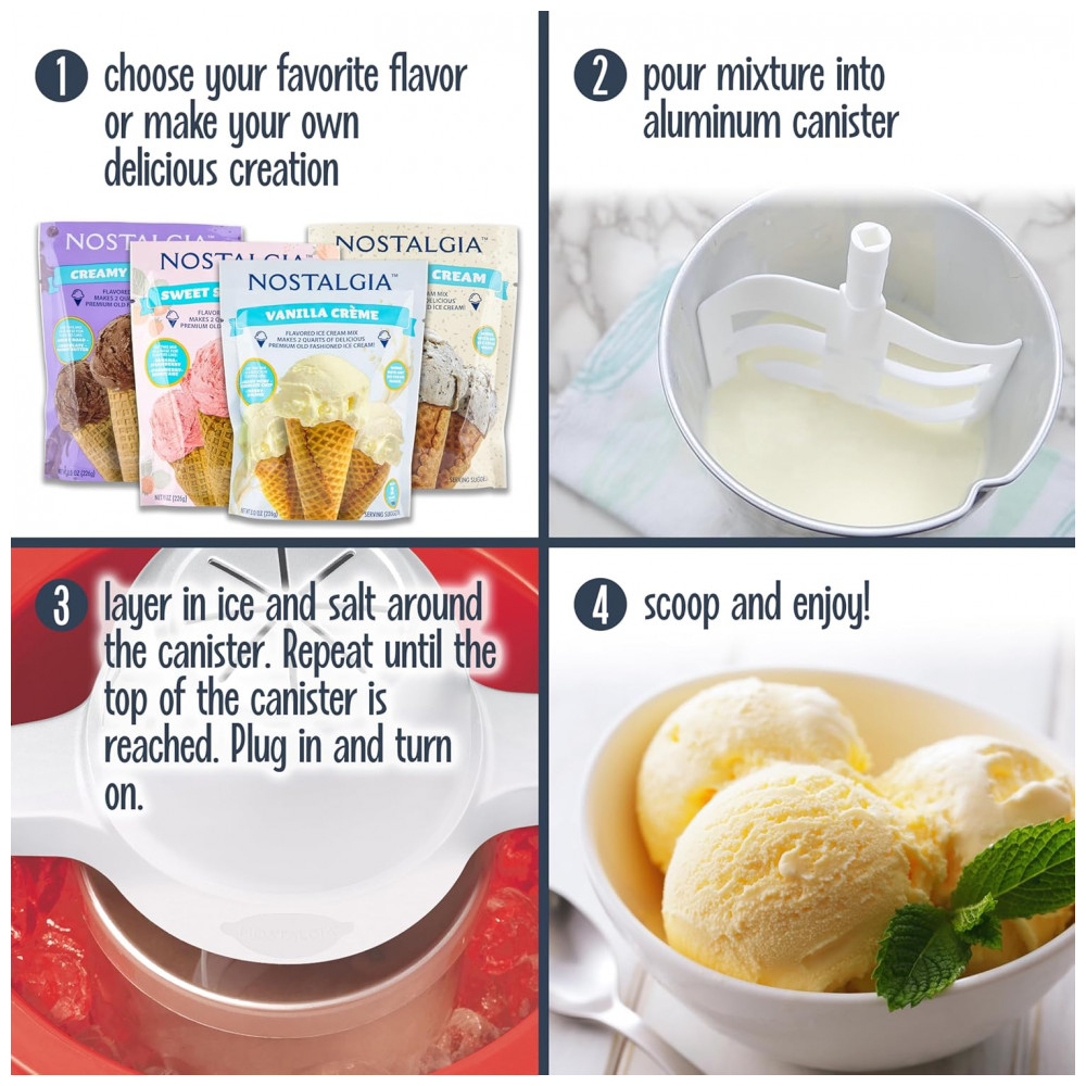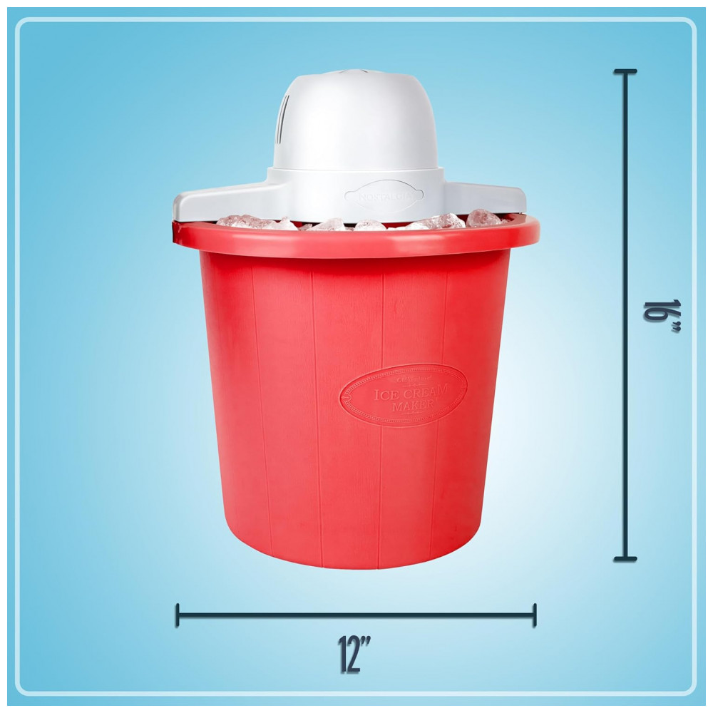 Desfrute de uma experiência divertida com sorvetes com a moderna Máquina de Sorvete Nostalgia. Faça sorvete, frozen yogurt ou gelato, ou escolha seu sabor favorito e crie uma delícia única. Com capacidade de 3,78 litros, é perfeito para festas ou lanches. Com motor potente que faz todo o trabalho por você, sem esforço manual. Acompanha recipiente prático para armazenamento no congelador.