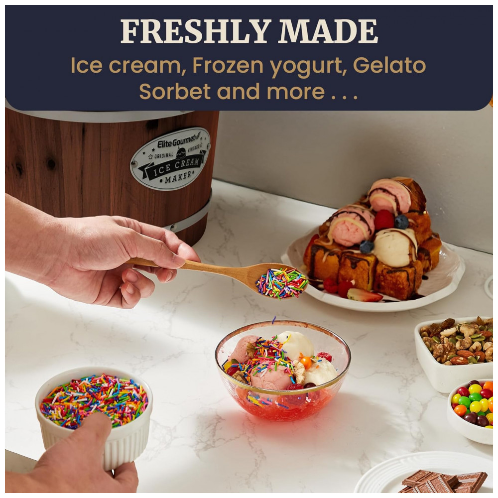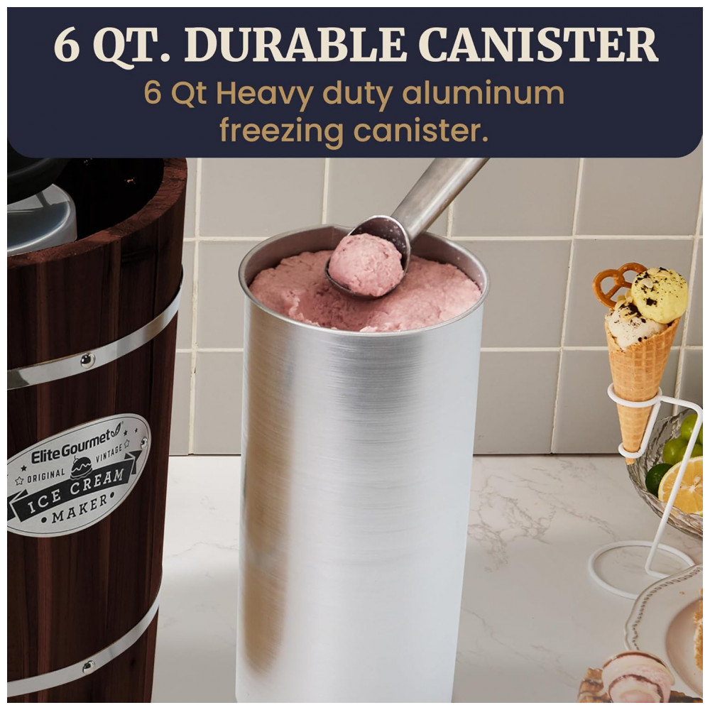 Máquina de Sorvete Elétrica Vintage Elite Gourmet EIM949 Old Fashioned de 567 Litros com Balde de Madeira de Nogueira Funciona com Gelo e Sal Grosso