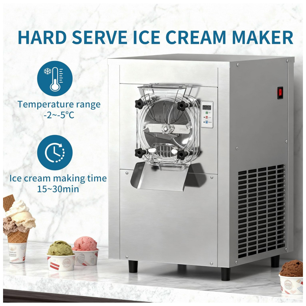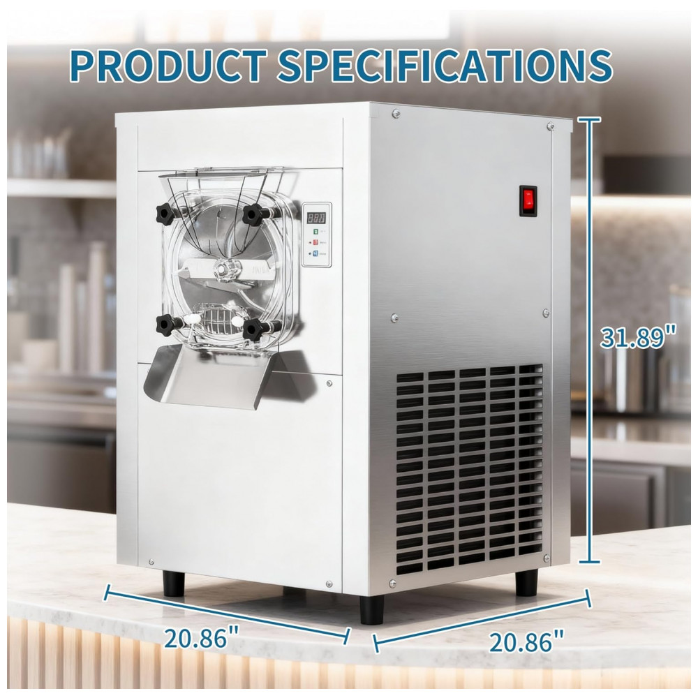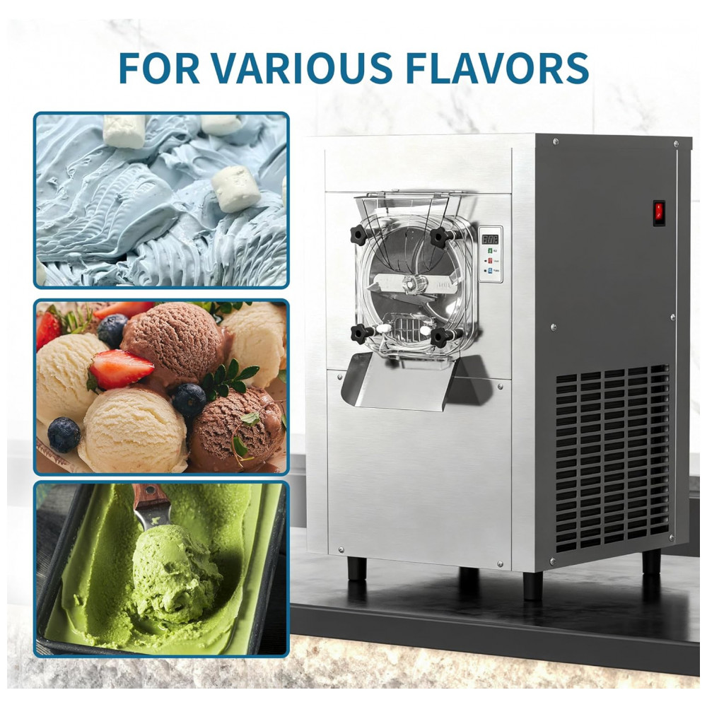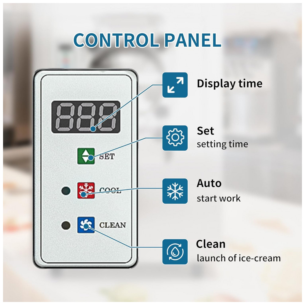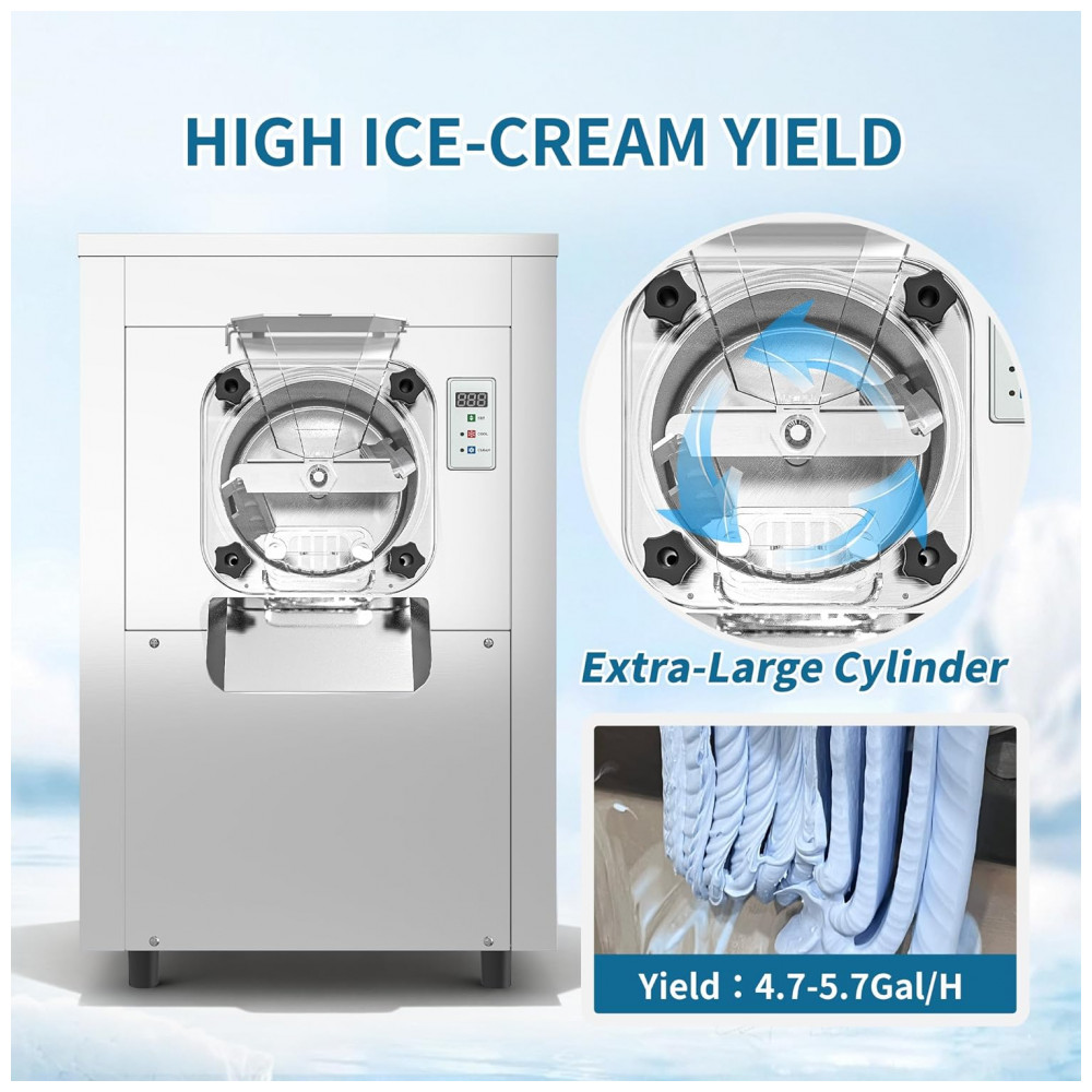 O equipamento opera automaticamente e possui funções de limpeza automática, otimizando a manutenção. Ideal para ambientes comerciais que exigem produção rápida e confiável de sorvetes do tipo hard ice cream.