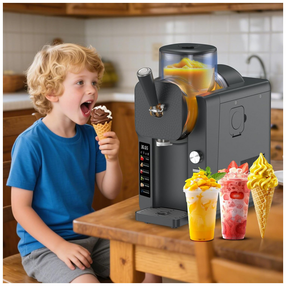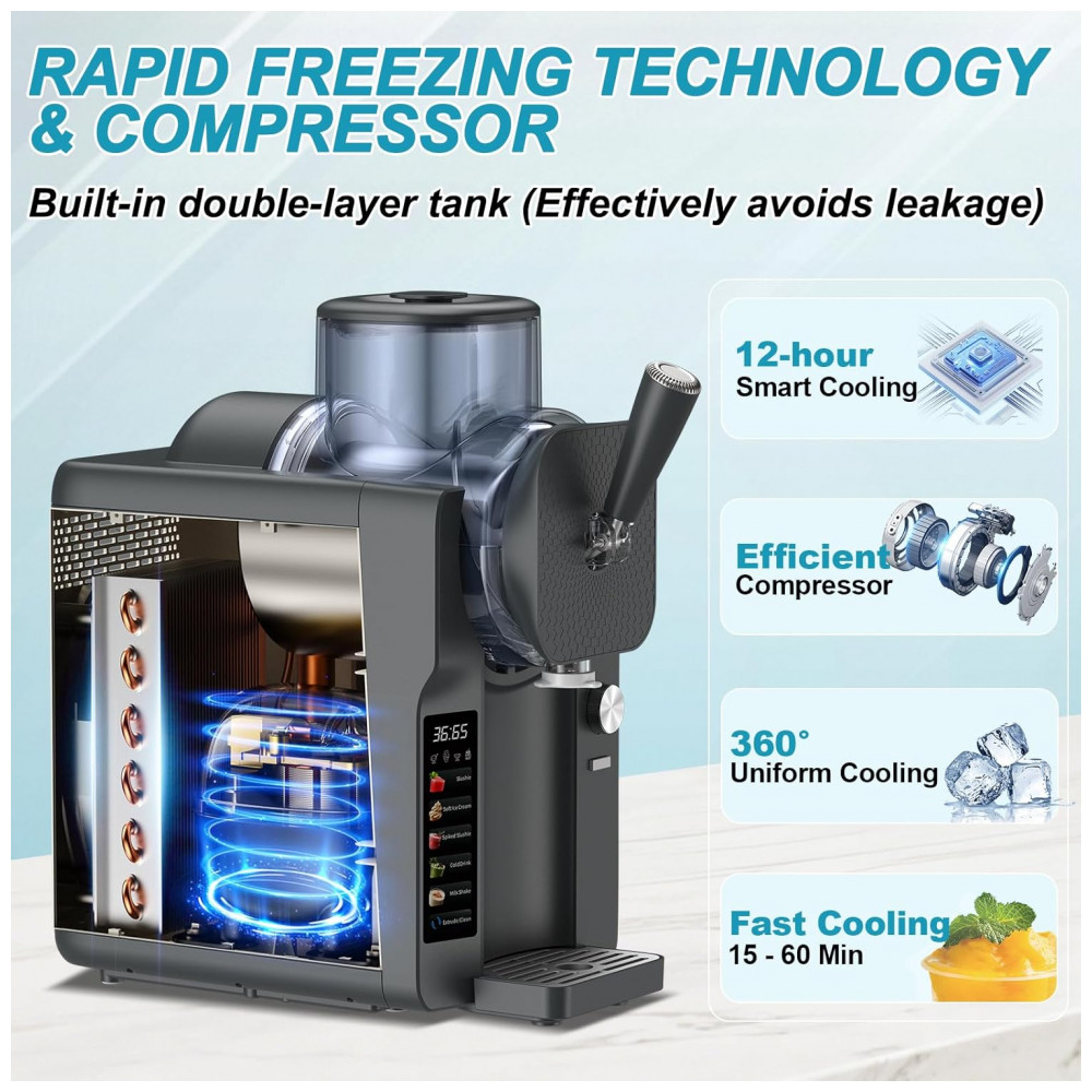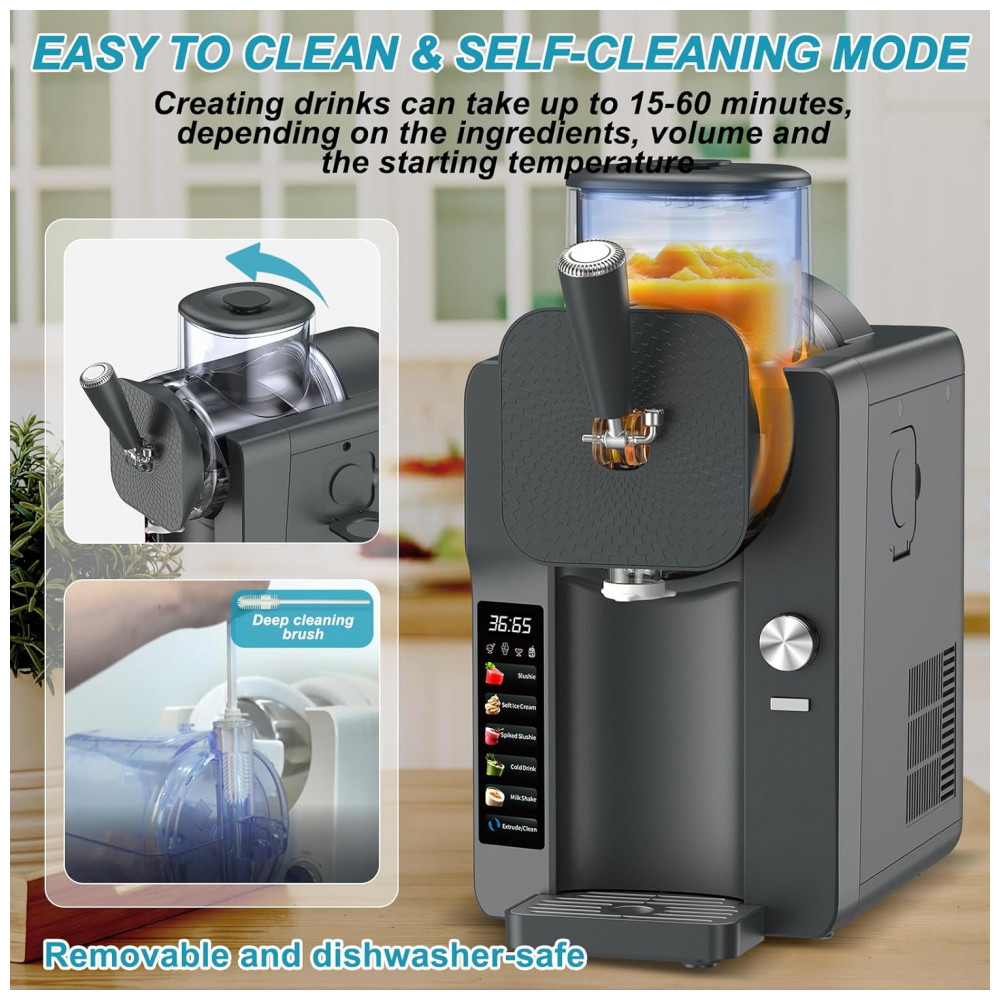 A Máquina de Raspadinha para casa é perfeita para reuniões familiares, festas ou eventos pequenos. Pode servir até 9 pessoas de uma só vez. Em apenas 15 a 45 minutos, prepare refrescantes bebidas geladas. Com design inovador, ela gira em torno do cilindro de resfriamento para um resfriamento uniforme. Transforme suas bebidas favoritas em deliciosos slushies ou sorvetes com um toque. A Máquina de Margarita suporta bebidas alcoólicas. Limpeza automática com um toque para manutenção sem complicações.