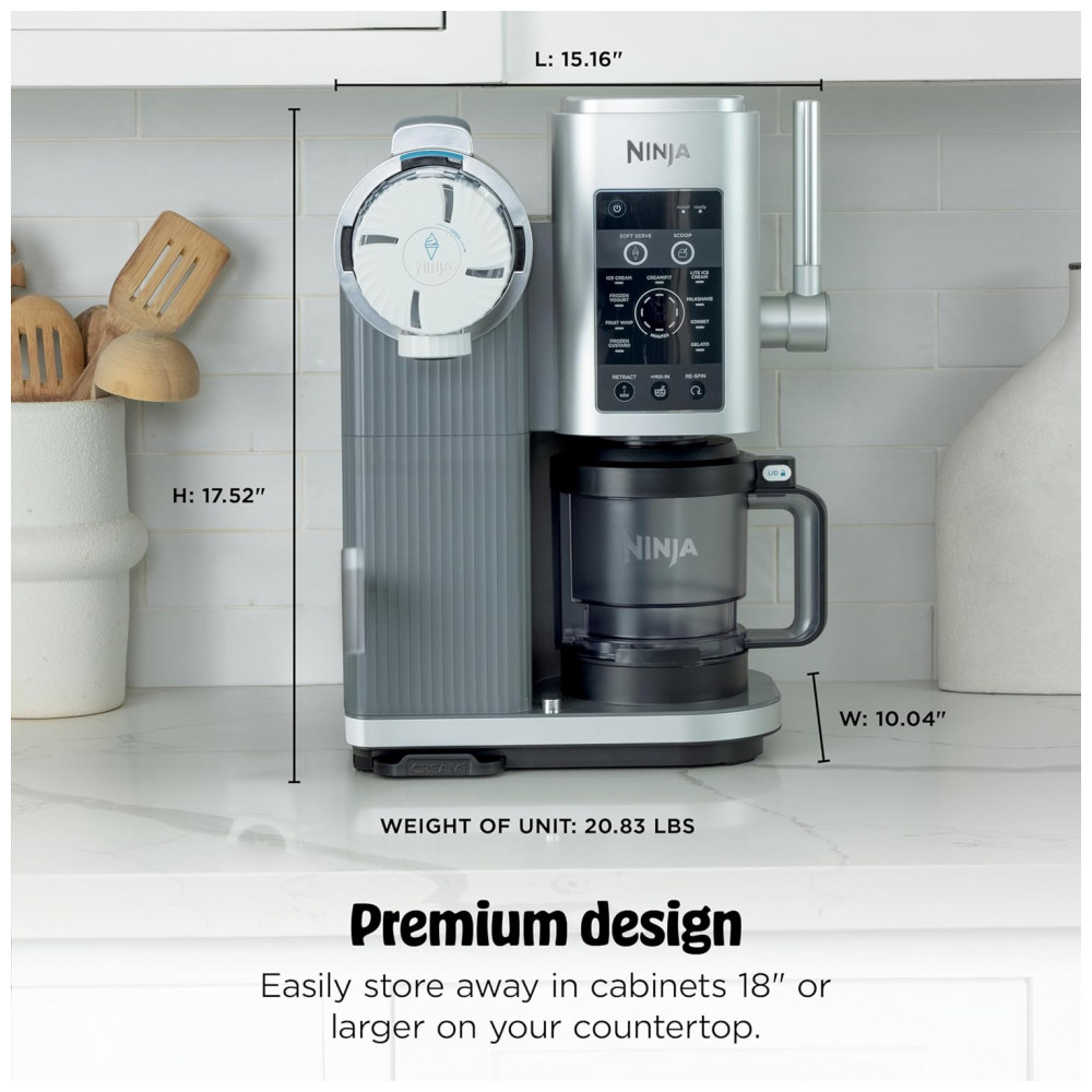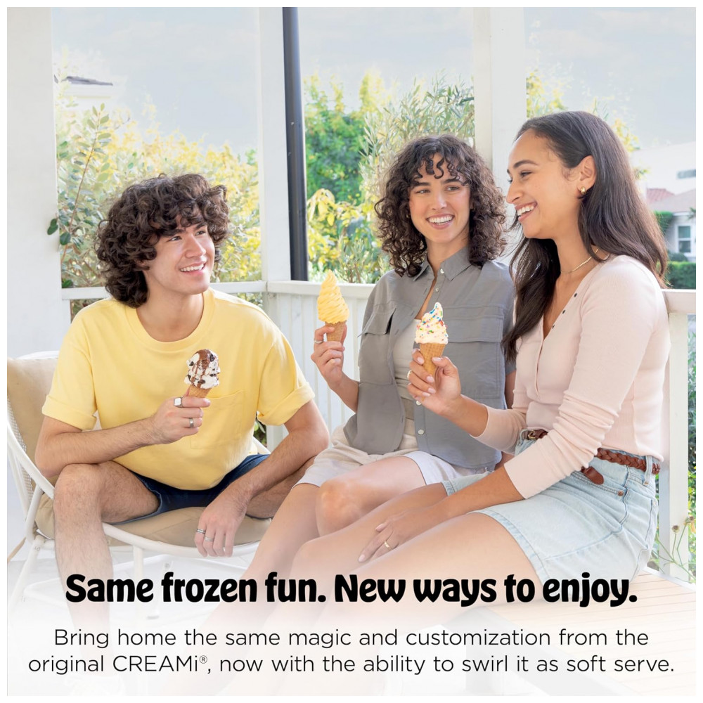 Indicada para uso doméstico, a Ninja CREAMi Scoop & Swirl permite controlar ingredientes e formulações, incluindo versões sem lactose, com menor teor de açúcar ou com aumento de proteína, desde que as receitas estejam dentro da capacidade e orientações de uso do fabricante. O formato vertical otimiza o espaço em bancada, mantendo painel de controle digital frontal de fácil acesso.
