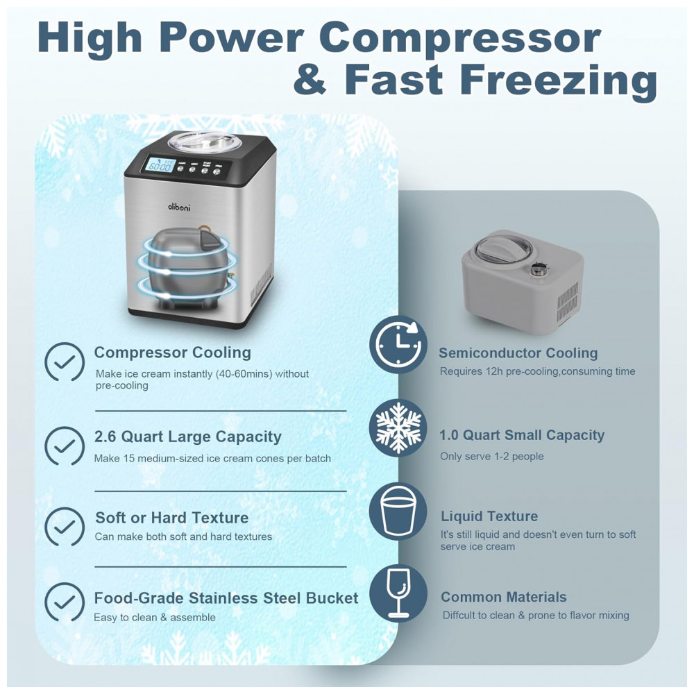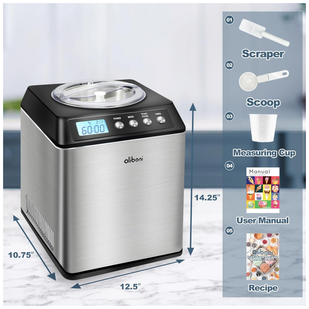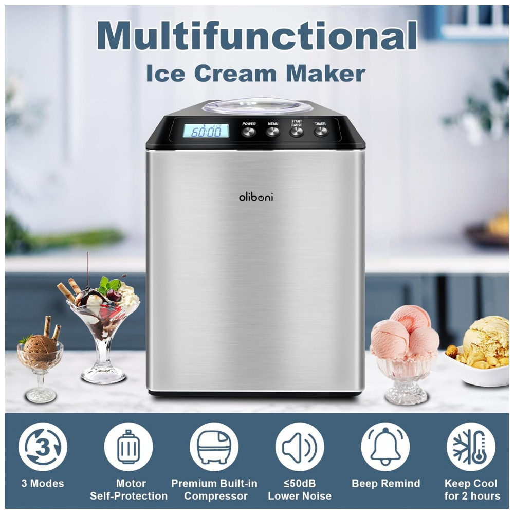 Desfrute de sorvetes fresquinhos a qualquer momento com a Máquina de Sorvete Oliboni 2,46 Litros Equipada com tecnologia de Auto-Resfriamento, seu compressor de 250W permite a produção rápida de sorvetes, gelatos e sorbets sem pré-congelamento. Com 3 modos de operação, incluindo função de manter resfriado por 2 horas, evita que o sorvete derreta. Com capacidade de 2,46 Litros, você pode preparar até 15 cones médios por vez. Fácil de limpar, possui acessórios removíveis. Transforme suas sobremesas com praticidade e qualidade!