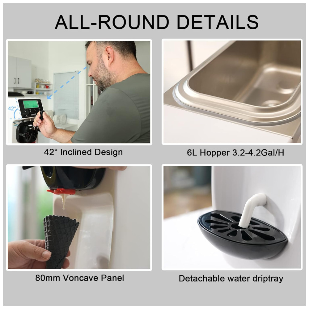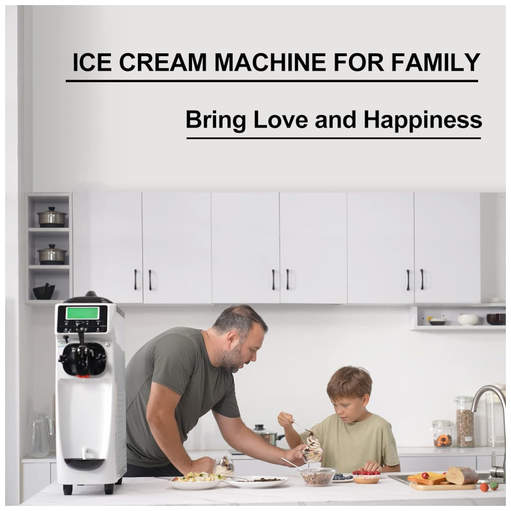 Pré resfriamento Esta máquina de fazer sorvete é equipada com um funil de capacidade de 6L para necessidades domésticas e comerciais, que também é equipada com um agitador para que a pasta de sorvete possa ser misturada mais completamente. também é equipado com função de pré resfriamento e manutenção de frescor tanque do freezer para manter o resfriamento do funil para fazer a pasta de sorvete fresca e não se deteriorar, coloque as matérias primas no funil durante a noite, garantindo a segurança alimentar.