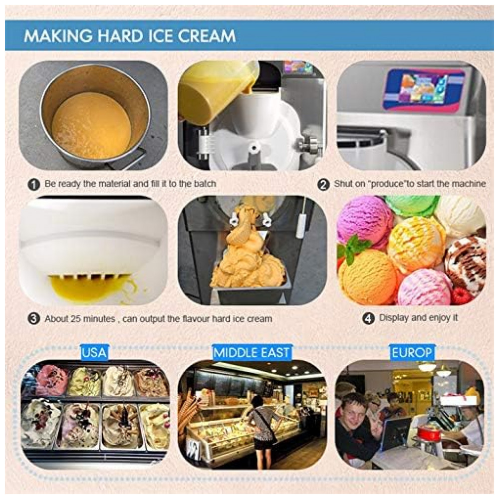 Além disso, a máquina possui proteção contra sobrecarga de corrente, garantindo sua segurança e a durabilidade do equipamento. E com a capacidade de misturar e alimentar qualquer pequeno pedaço de chocolate, biscoitos ou frutas frescas enquanto a máquina está em funcionamento, você pode criar uma variedade infinita de sabores para satisfazer seus clientes.