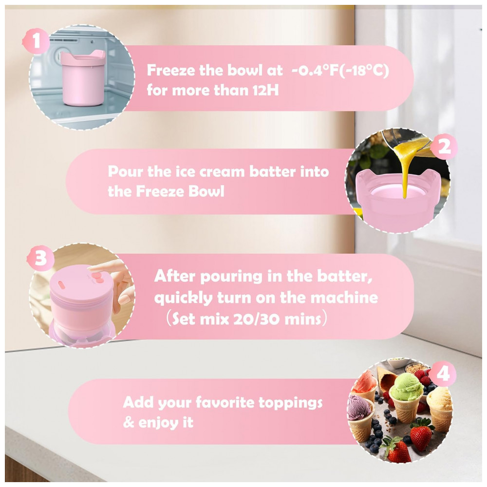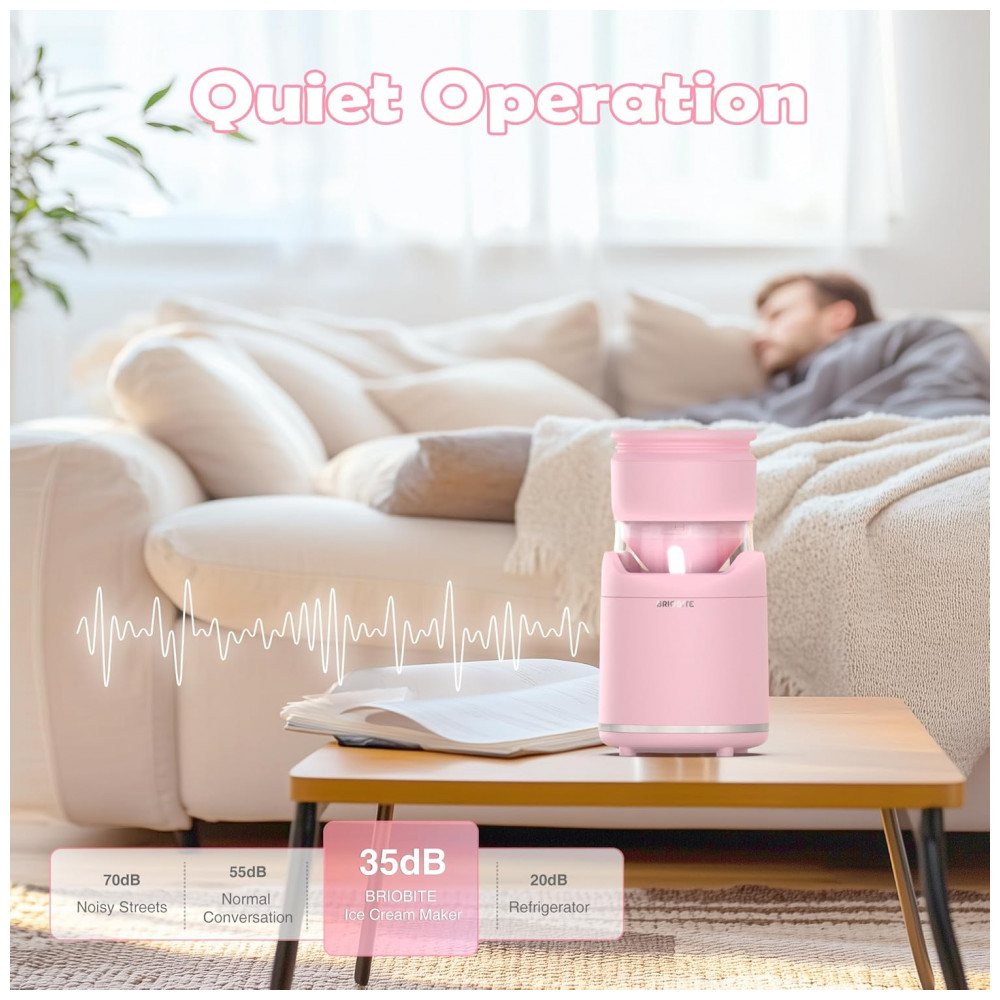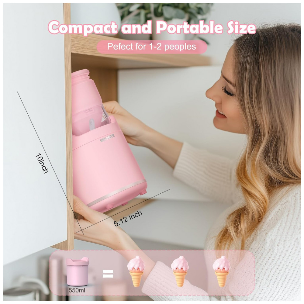 Máquina de Sorvete Soft BRIOBITE Rosa Recarregável Baixo Ruído USB-C 550ml Modelo BL500_PA