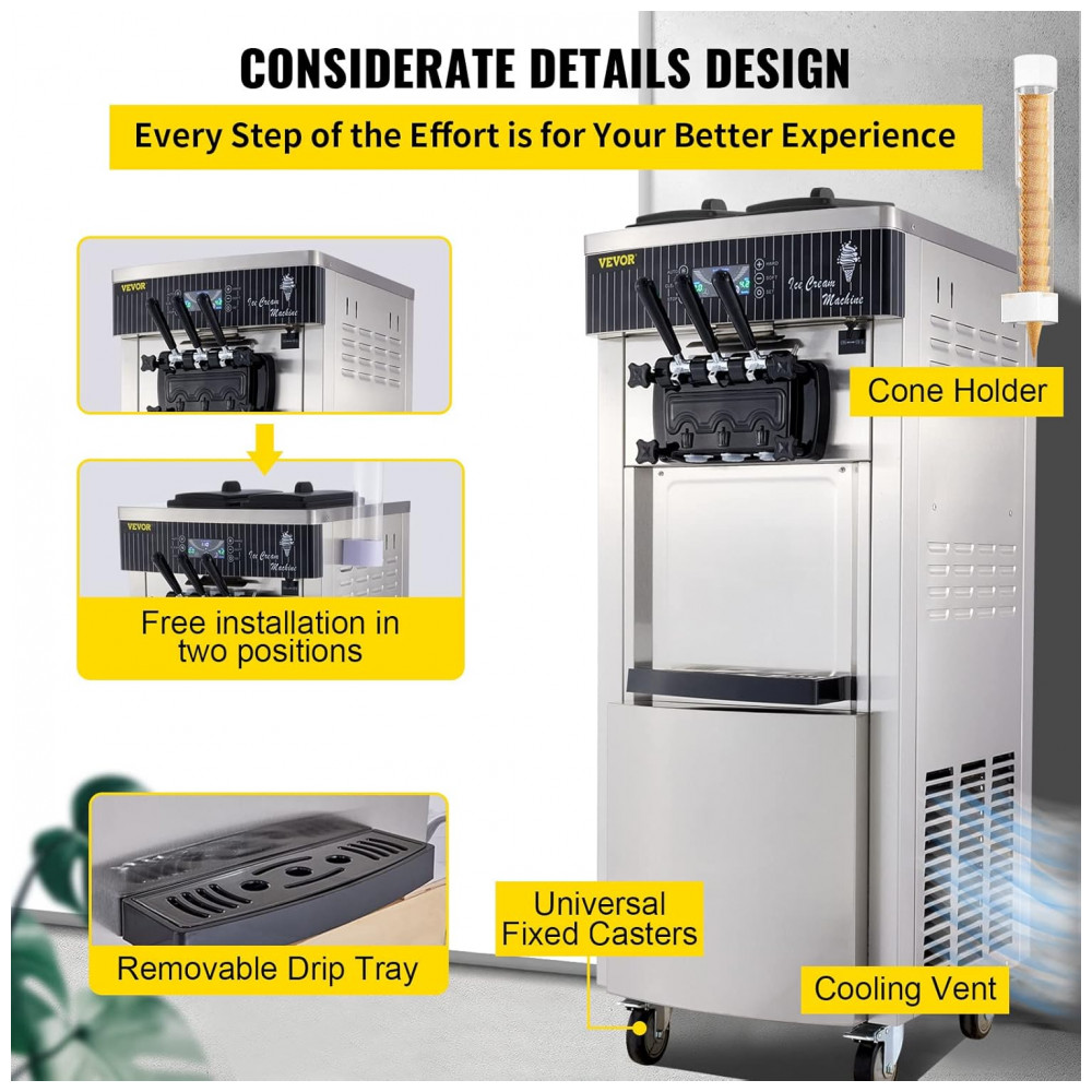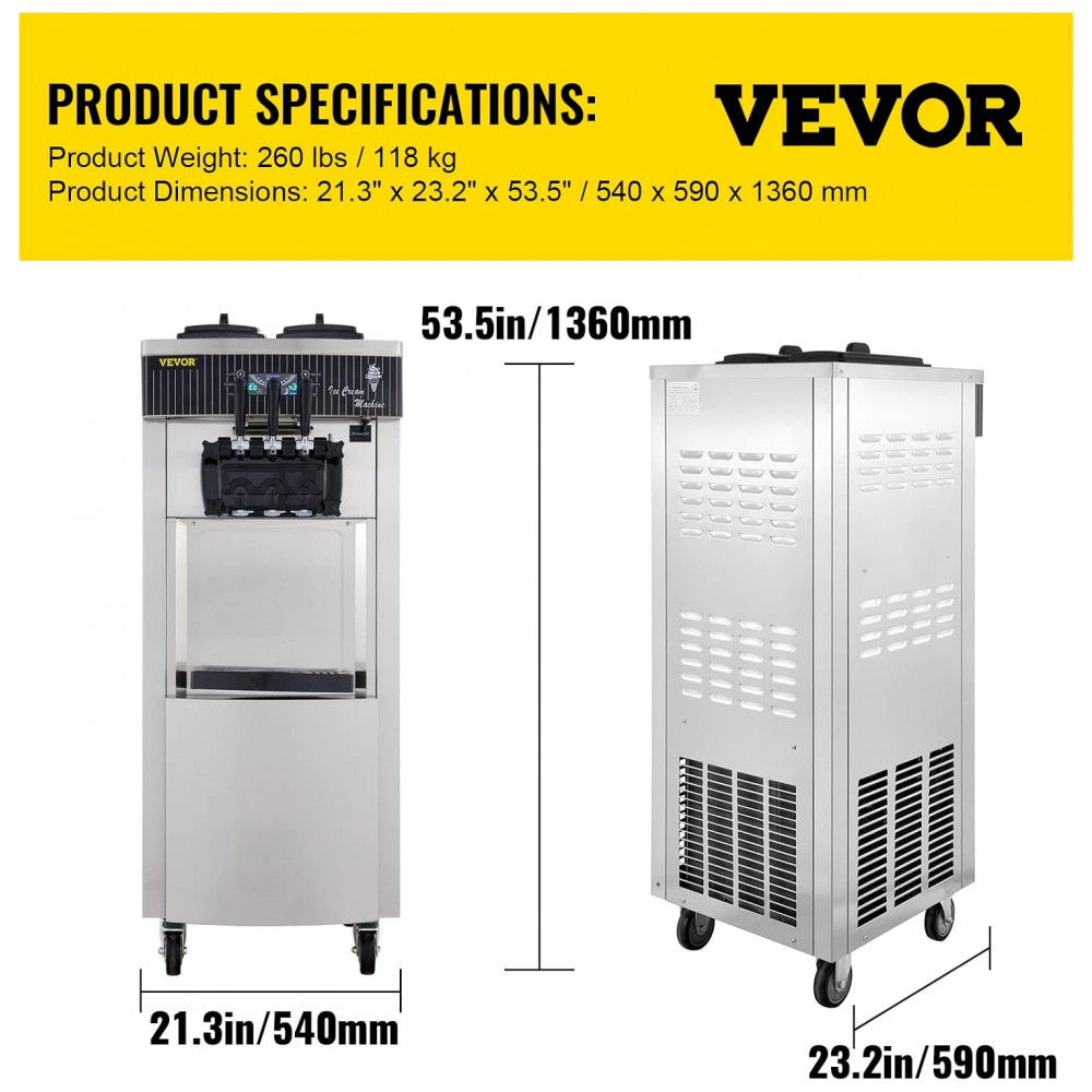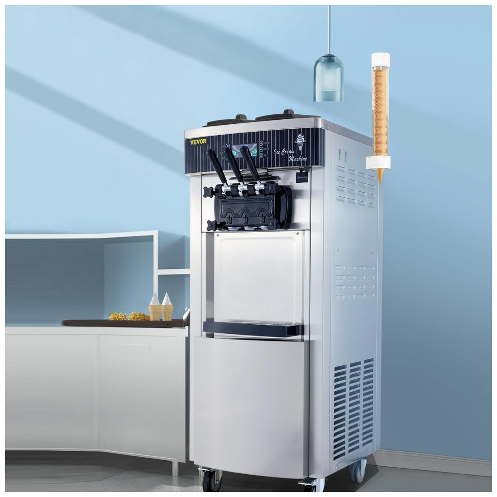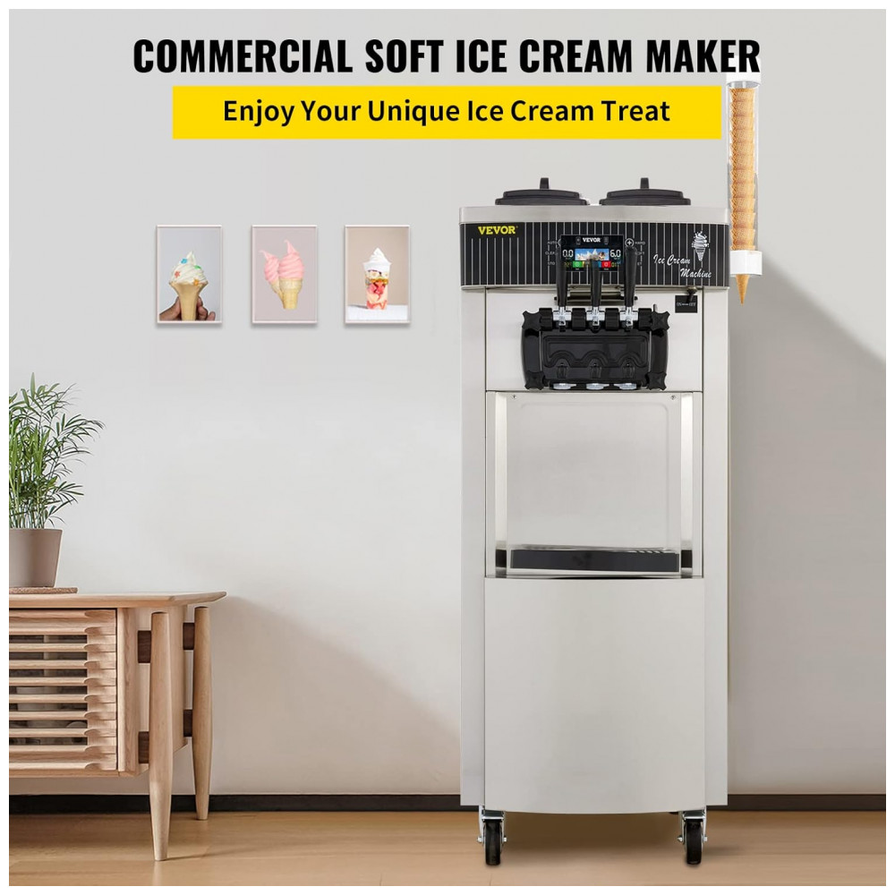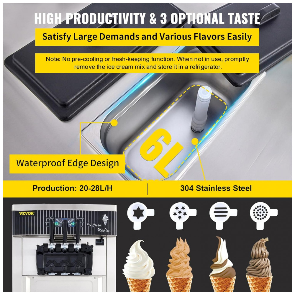 Máquina de Sorvete Soft Comercial VEVOR Prata 3 Sabores Alta Produção 20-28L/h 2200W Modelo YKF-8228H