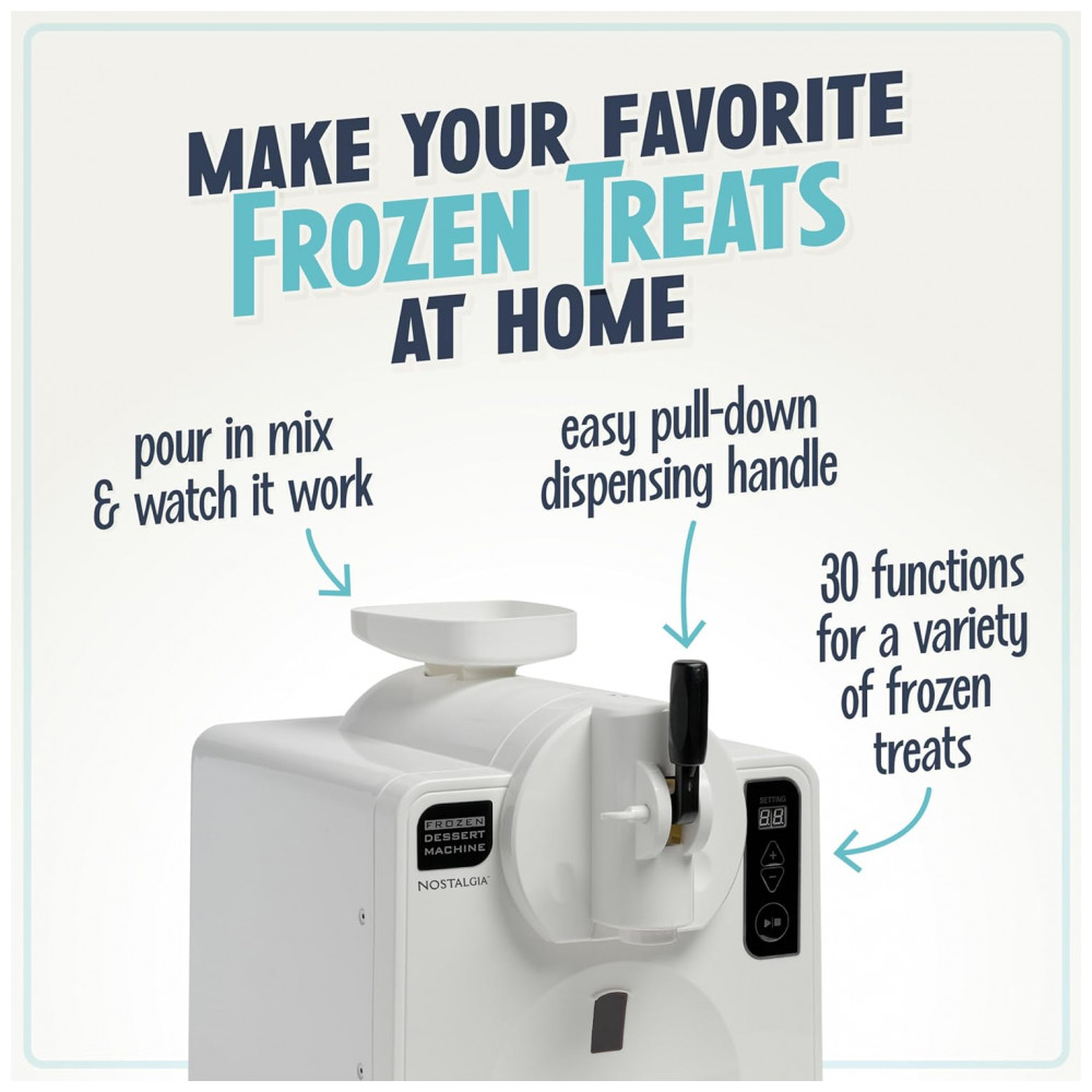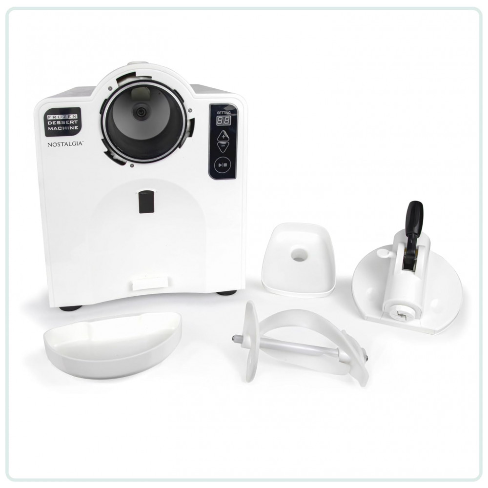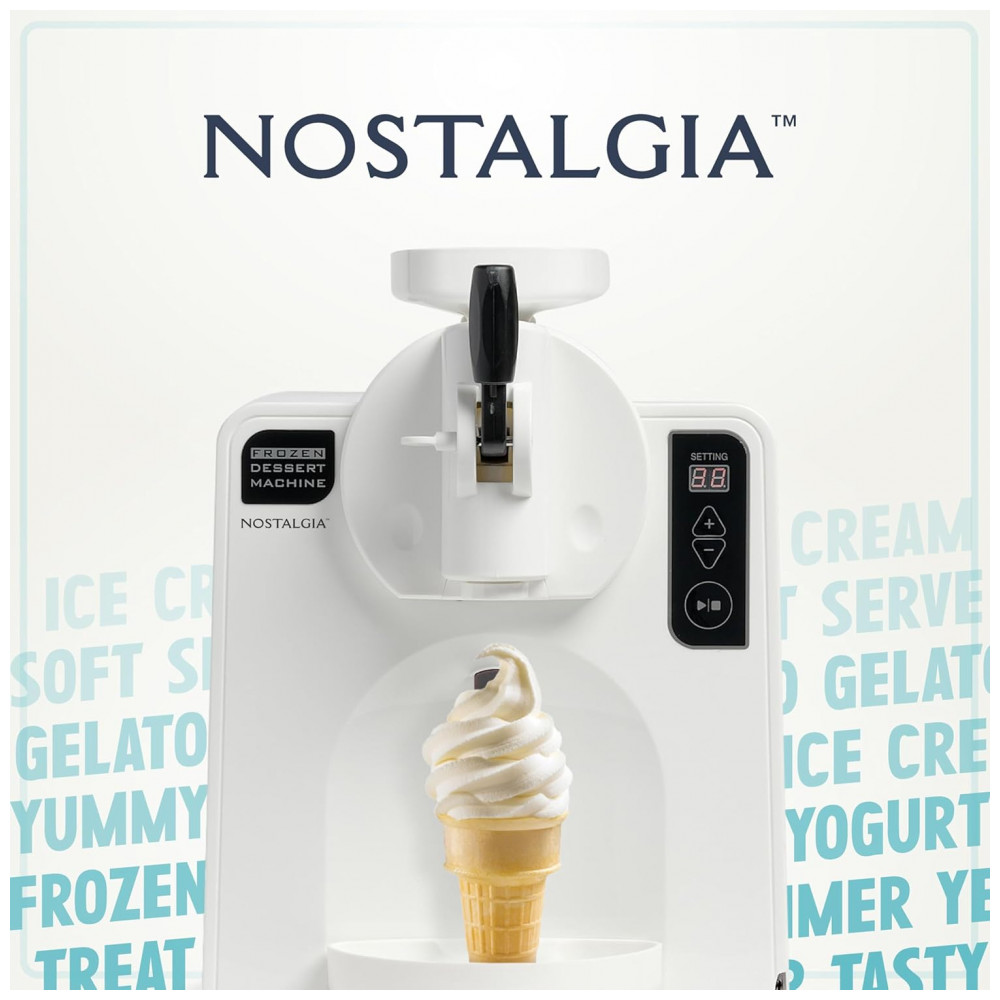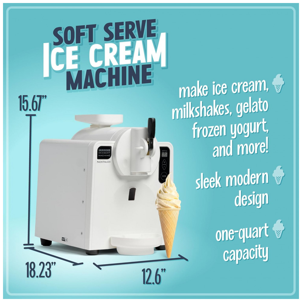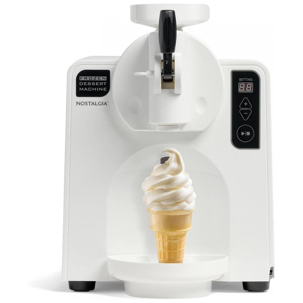 A máquina de sorvete soft serve Nostalgia NFDM1WH é equipada com compressor potente e sistema de refrigeração que permite a produção rápida e eficiente de sobremesas congeladas, como sorvete, iogurte congelado, gelato, milkshakes e smoothies. Com capacidade de até 1 quart (aproximadamente 0,95 litros), é ideal para uso doméstico ou em ambientes compactos.
