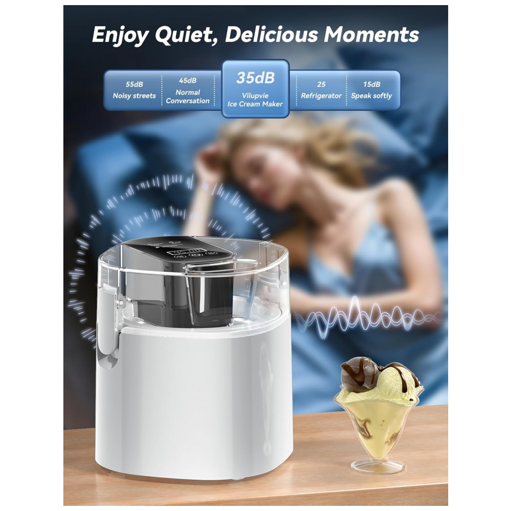 Máquina de Sorvete Vilupvie 142 litros Branco e Preto Tigela Isolante Display LCD Temporizador SU502