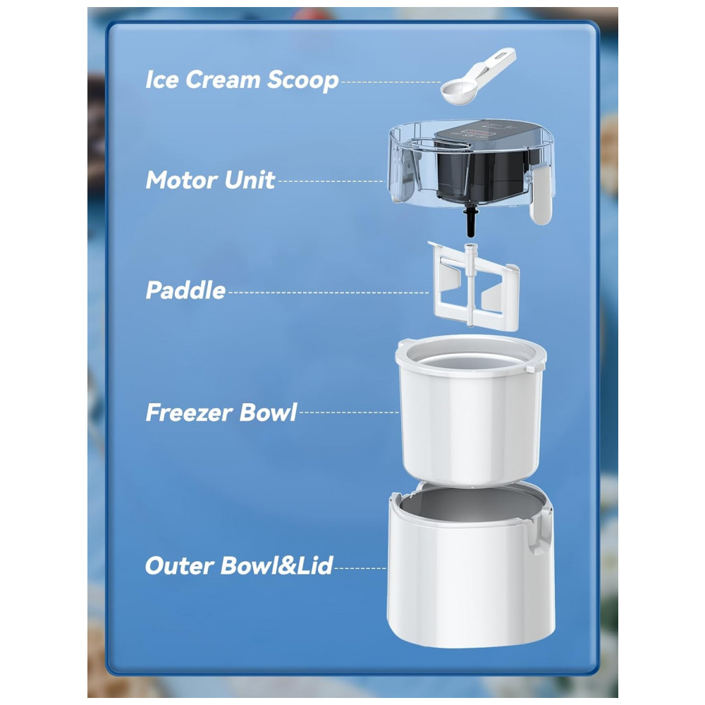 A Vilupvie SU502 é uma máquina versátil para sobremesas congeladas, processando sorbet, gelato, sorvete clássico, sherbet, bebidas congeladas e iogurte congelado com adição de mix-ins como frutas, nozes ou chips de chocolate durante o ciclo. Opera com tigela isolante pré-congelada, ativada por botão único para ciclo de 25 minutos, com tecnologia de baixo ruído para uso silencioso. Inclui pá de sorvete em plástico para extração segura, evitando danos à tigela interna.